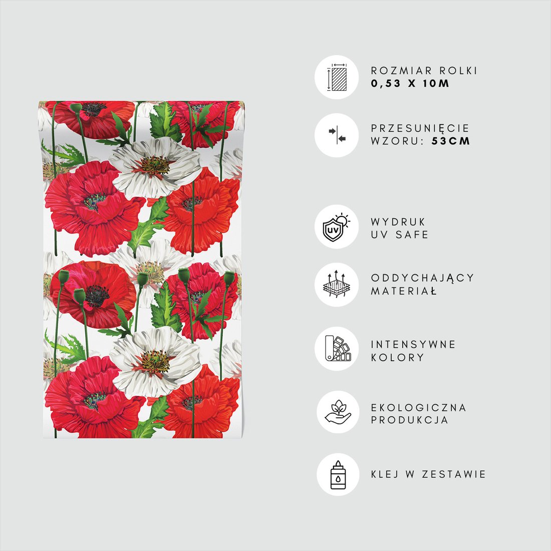 Odkryj piękno i funkcjonalność tapety z motywem maki, liście, pąki. To połączenie wyjątkowego wzornictwa z łatwością aplikacji, doskonałe do każdego pomieszczenia.