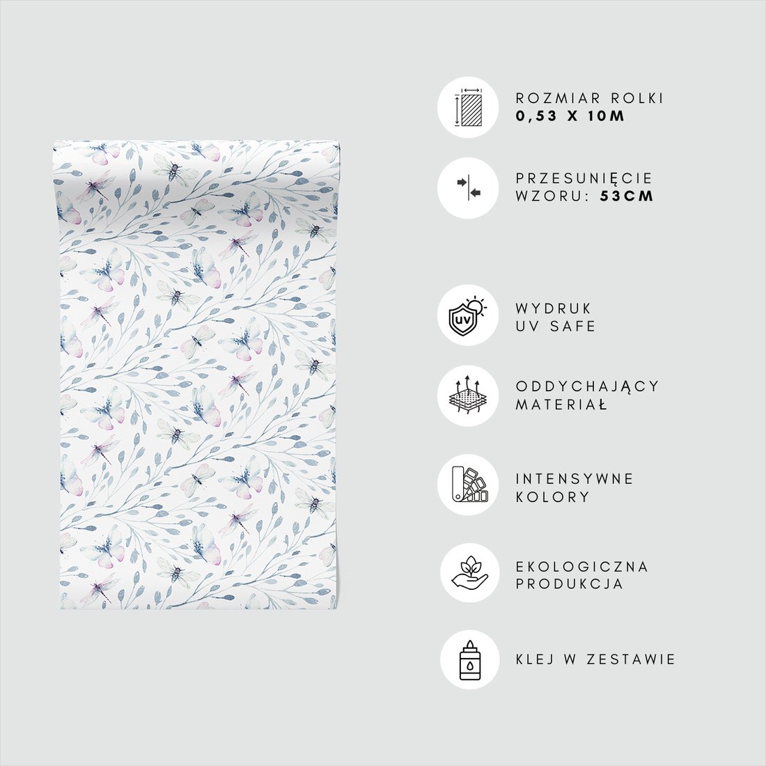 Odkryj piękno i funkcjonalność tapety z motywem motyle, ważki, liście. To połączenie wyjątkowego wzornictwa z łatwością aplikacji, doskonałe do każdego pomieszczenia.