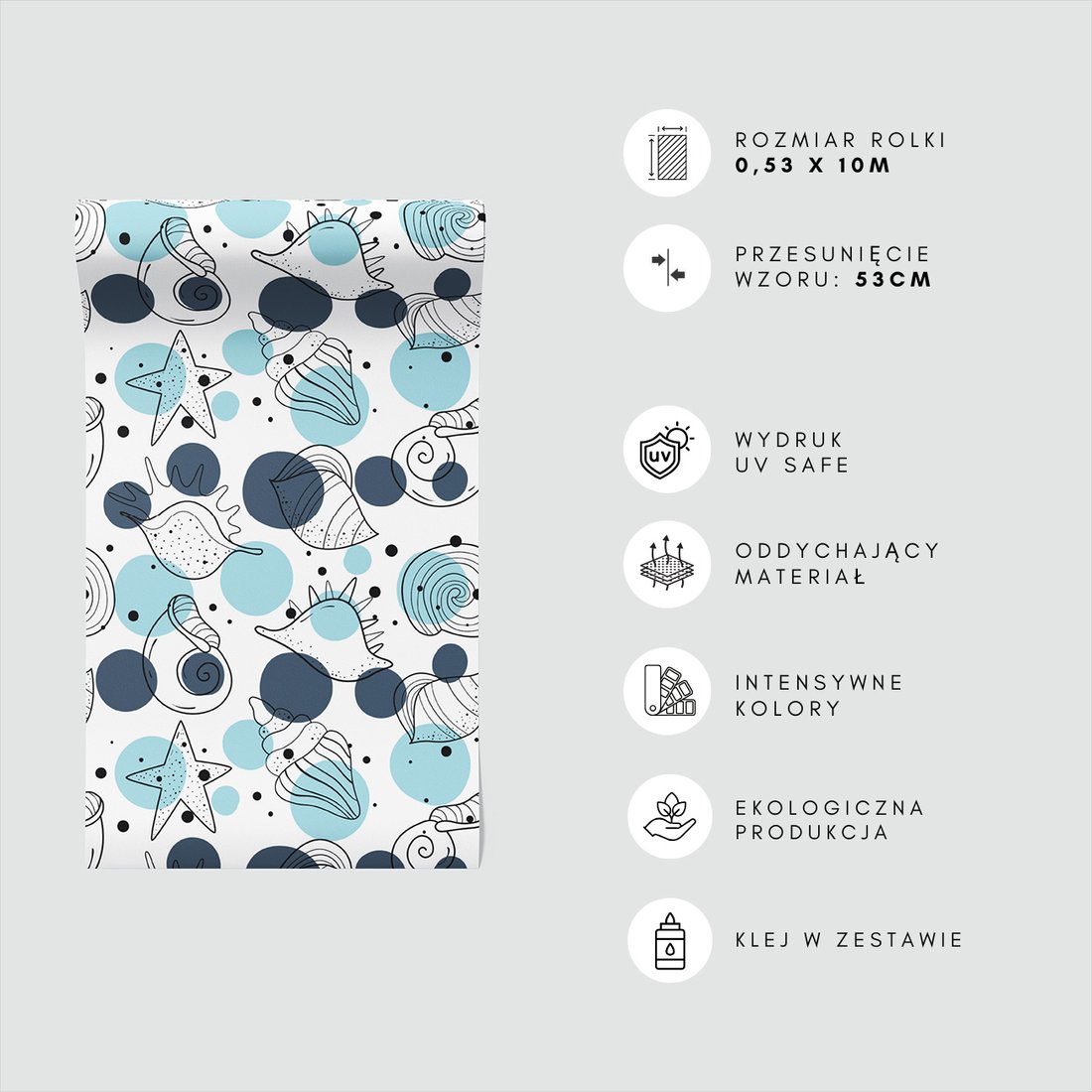 Odkryj piękno i funkcjonalność tapety z motywem muszle, gwiazda, kropki. To połączenie wyjątkowego wzornictwa z łatwością aplikacji, doskonałe do każdego pomieszczenia.