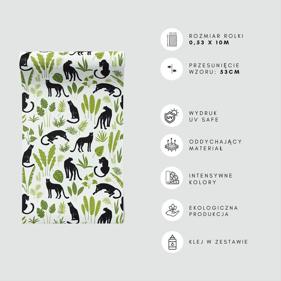 Odkryj piękno i funkcjonalność tapety z motywem pantery, liście, roślinność. To połączenie wyjątkowego wzornictwa z łatwością aplikacji, doskonałe do każdego pomieszczenia.