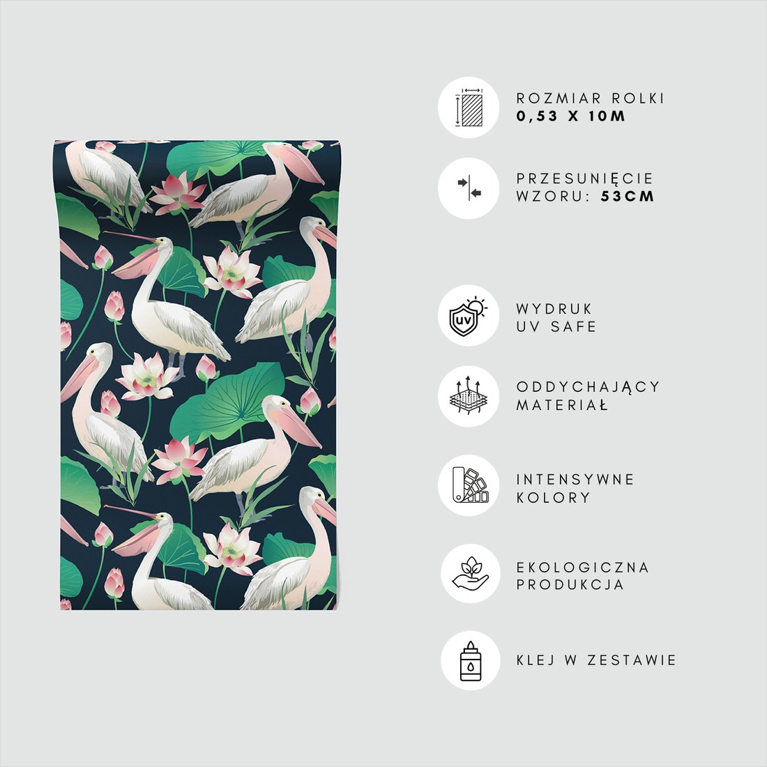 Odkryj piękno i funkcjonalność tapety z motywem pelikan, kwiat, liście. To połączenie wyjątkowego wzornictwa z łatwością aplikacji, doskonałe do każdego pomieszczenia.