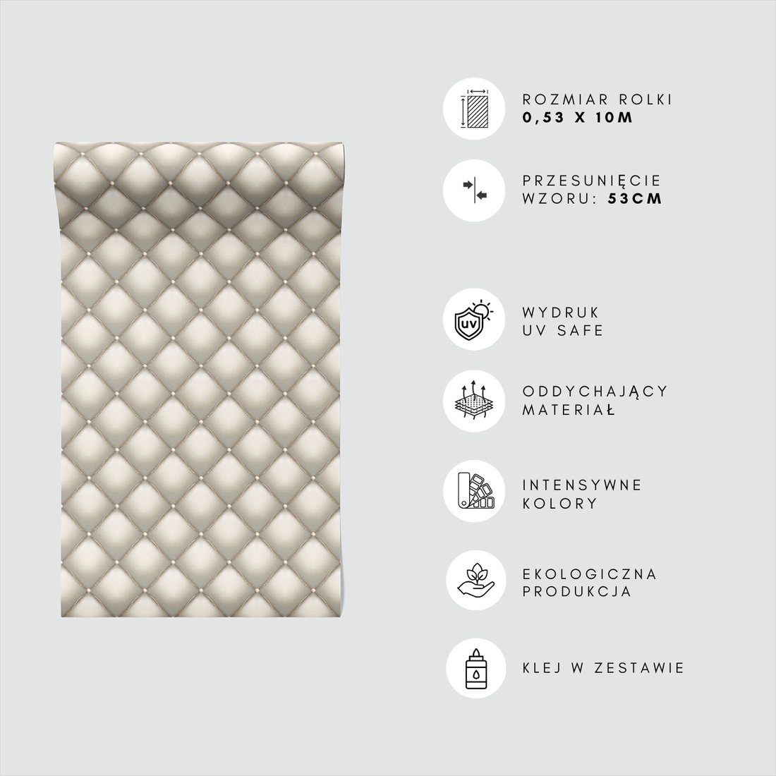 Odkryj piękno i funkcjonalność tapety z motywem pikowanie, tapicerka, guziki. To połączenie wyjątkowego wzornictwa z łatwością aplikacji, doskonałe do każdego pomieszczenia.