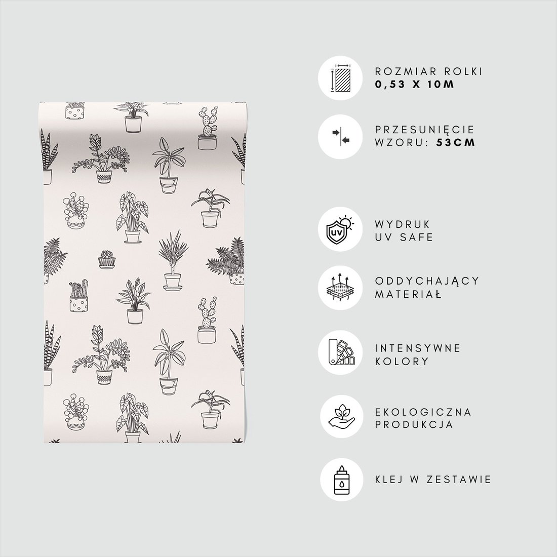 Odkryj piękno i funkcjonalność tapety z motywem rośliny, doniczki, liście. To połączenie wyjątkowego wzornictwa z łatwością aplikacji, doskonałe do każdego pomieszczenia.