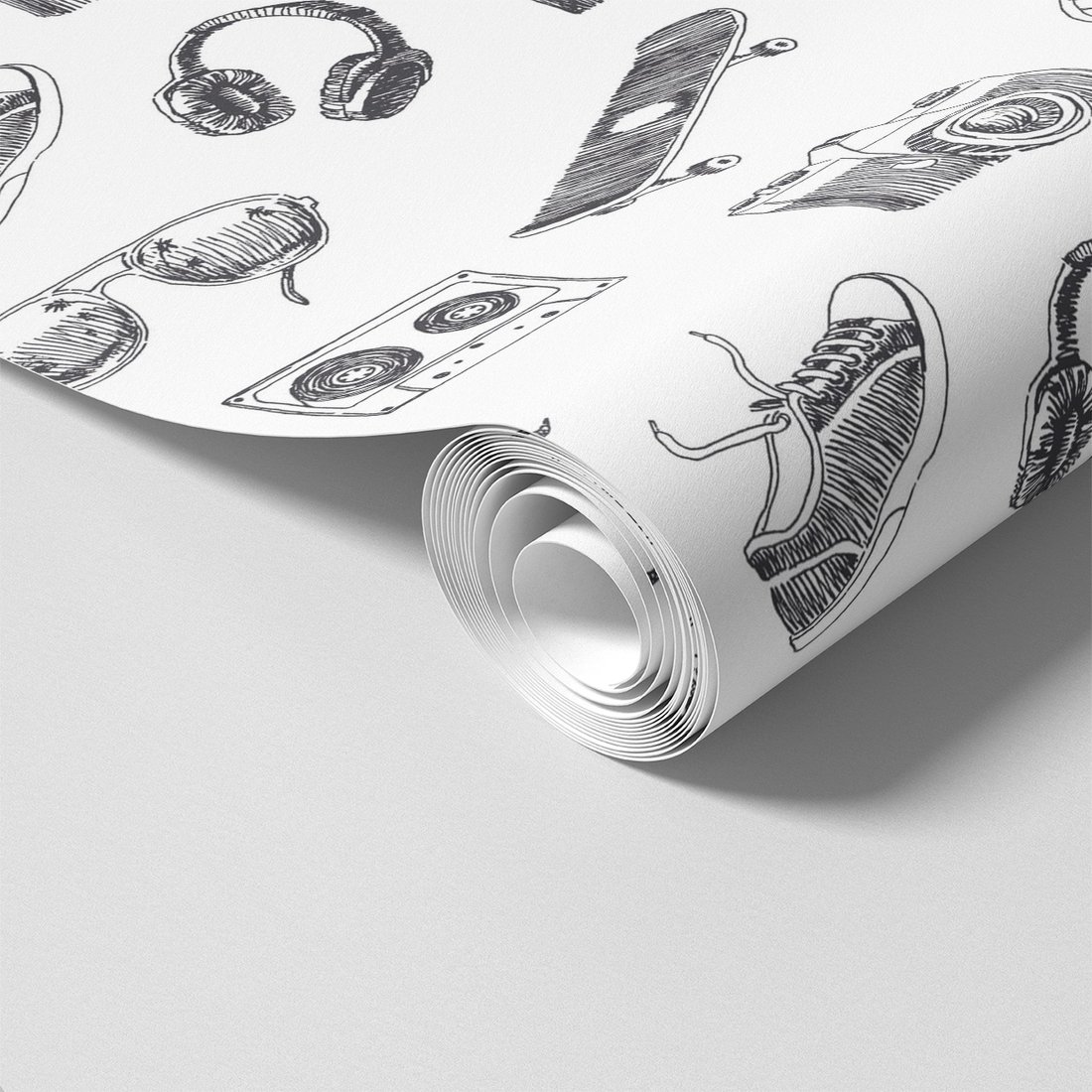 Odkryj piękno i funkcjonalność tapety z motywem słuchawki, deskorolka, retro. To połączenie wyjątkowego wzornictwa z łatwością aplikacji, doskonałe do każdego pomieszczenia.