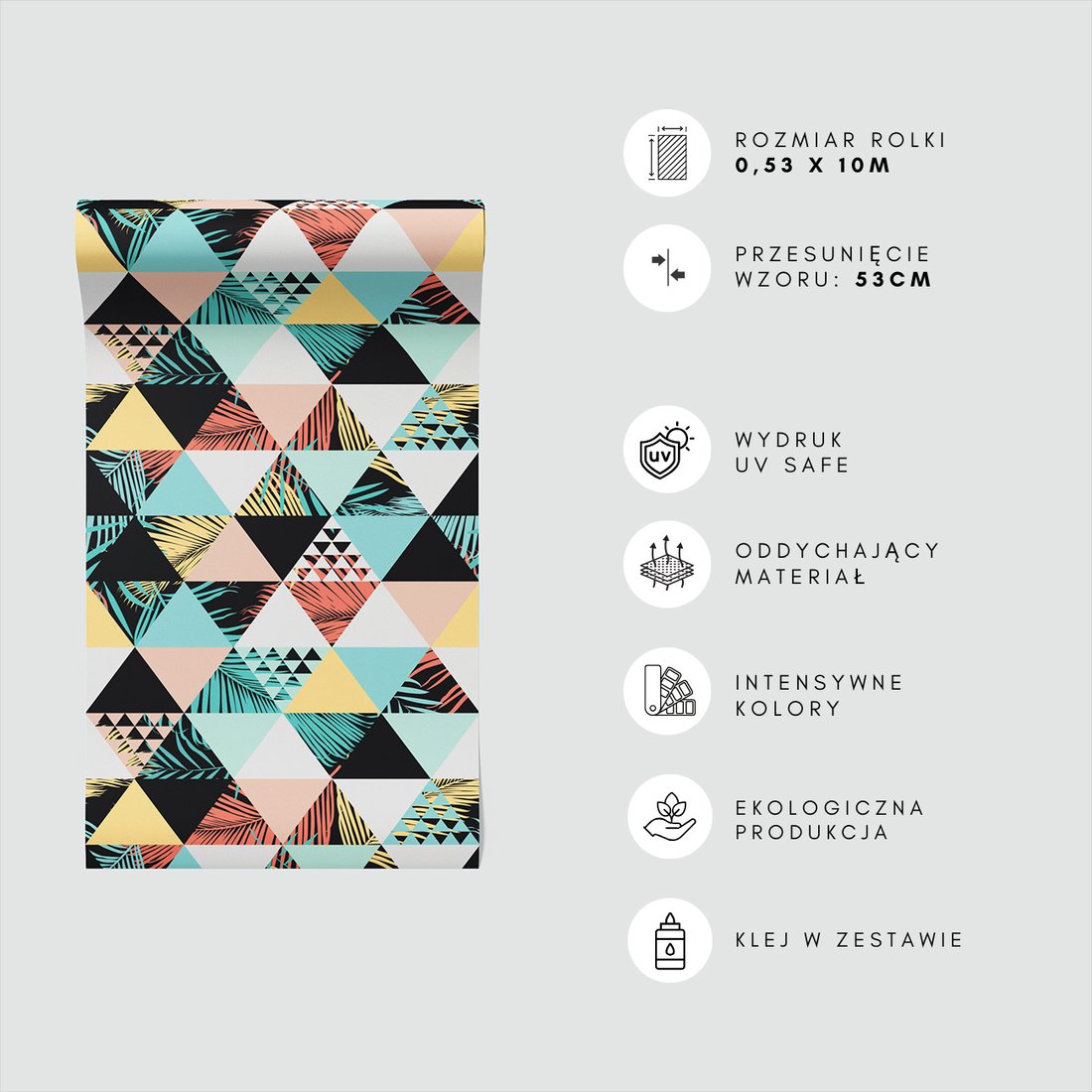 Odkryj piękno i funkcjonalność tapety z motywem trójkąty, liście, abstrakcja. To połączenie wyjątkowego wzornictwa z łatwością aplikacji, doskonałe do każdego pomieszczenia.