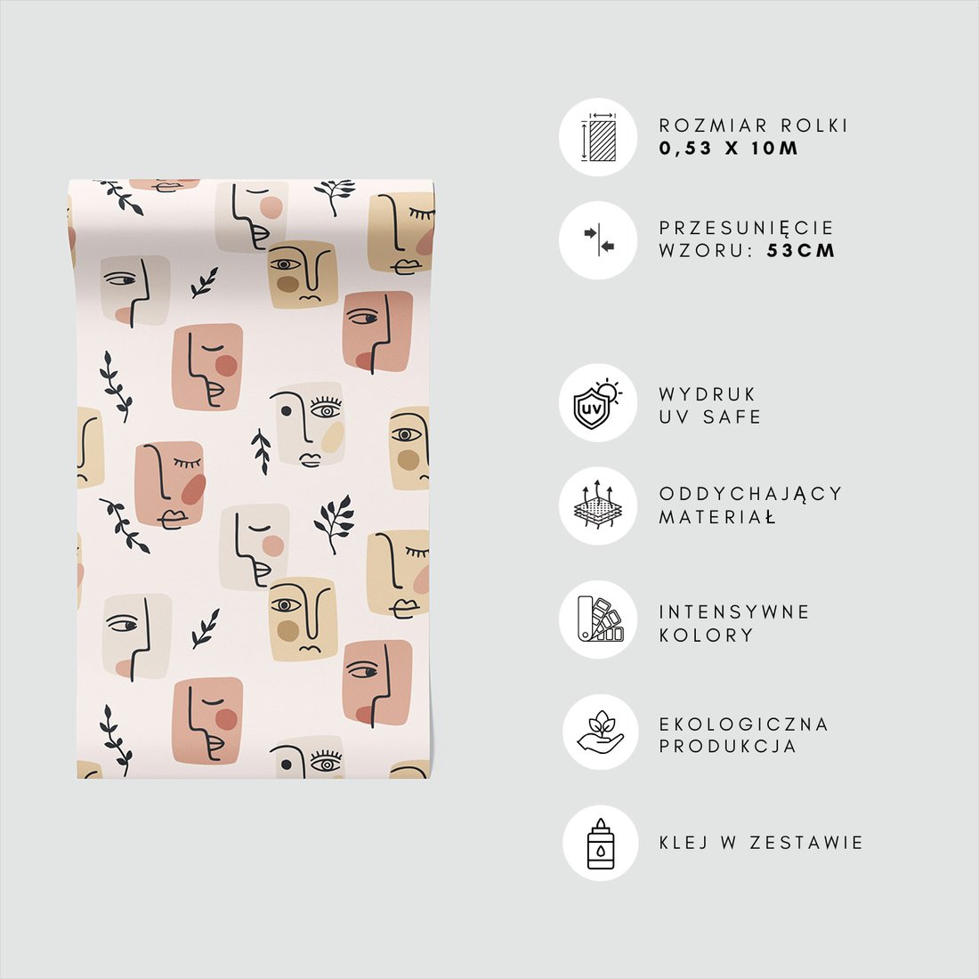 Odkryj piękno i funkcjonalność tapety z motywem twarz, liście, abstrakcja. To połączenie wyjątkowego wzornictwa z łatwością aplikacji, doskonałe do każdego pomieszczenia.