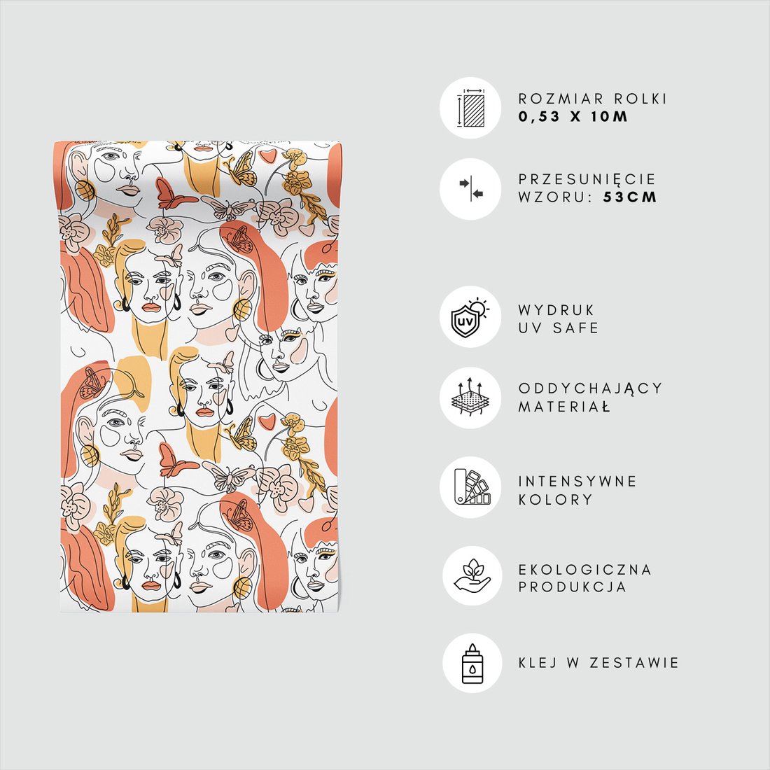 Odkryj piękno i funkcjonalność tapety z motywem twarze, motyle, kwiaty. To połączenie wyjątkowego wzornictwa z łatwością aplikacji, doskonałe do każdego pomieszczenia.