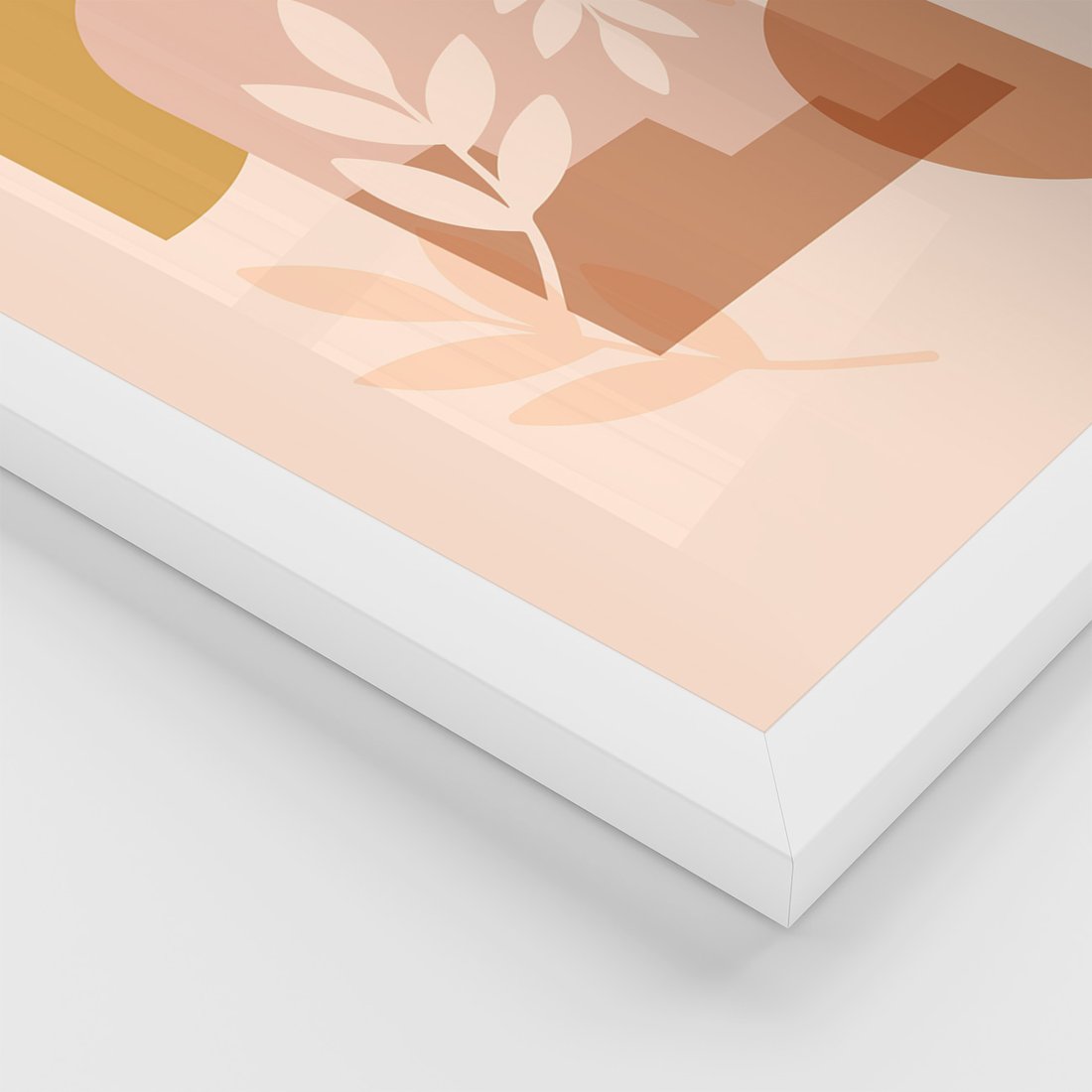 Zestaw obrazy w ramie, plakaty - abstrakcja, boho, liście - rama biała