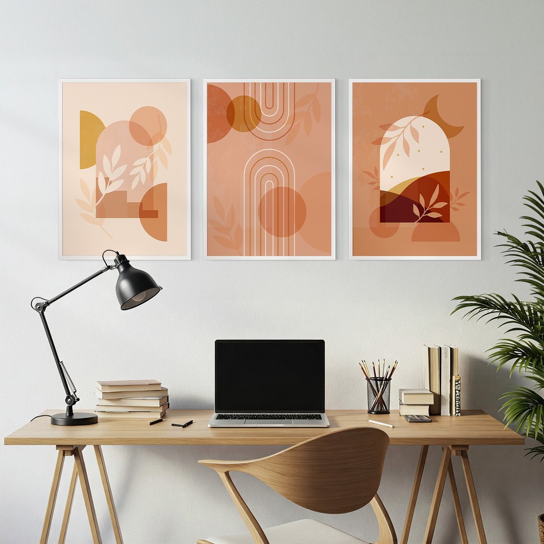 • Zestaw obrazy w ramie, plakaty - abstrakcja, boho, liście