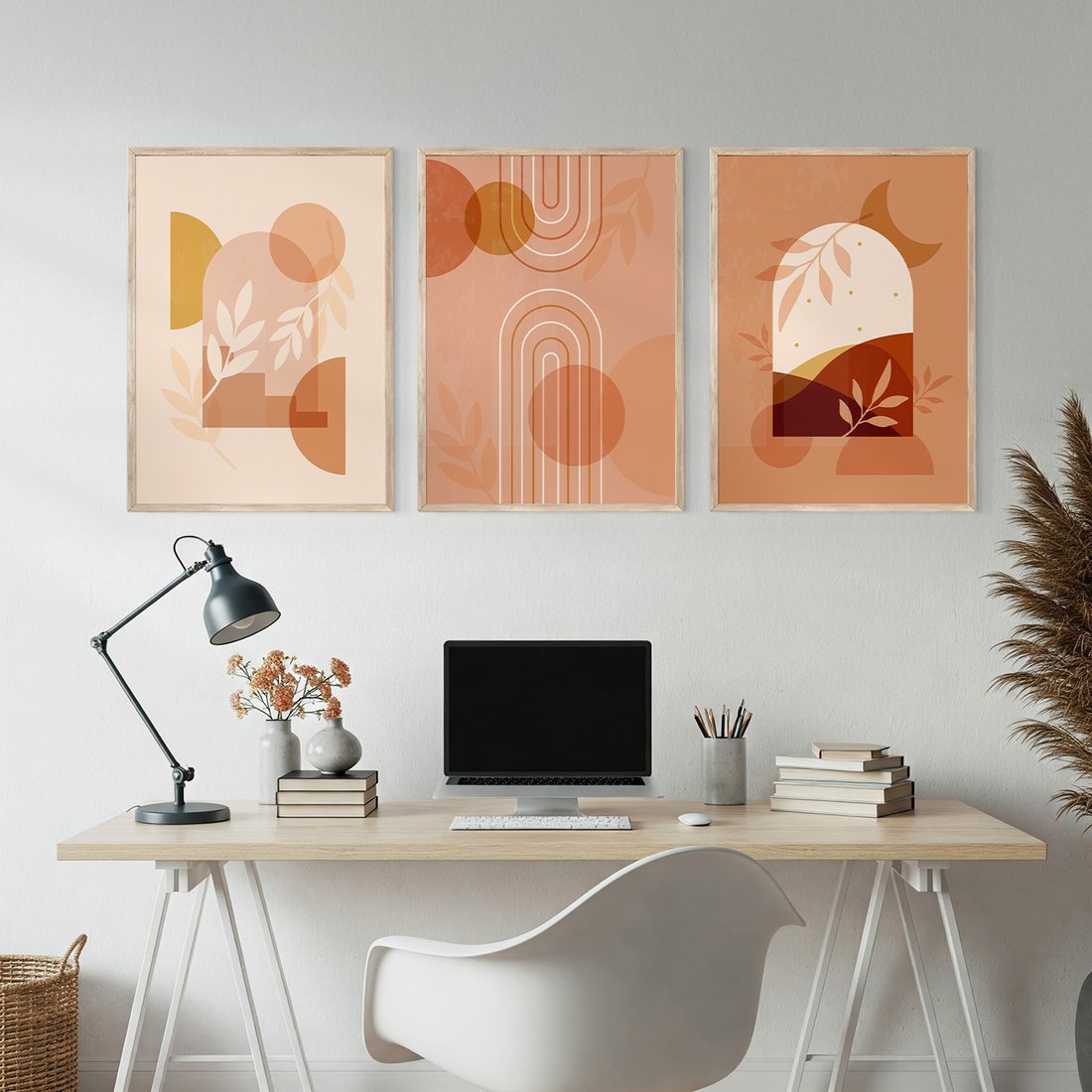 • Zestaw obrazy w ramie, plakaty - abstrakcja, boho, liście