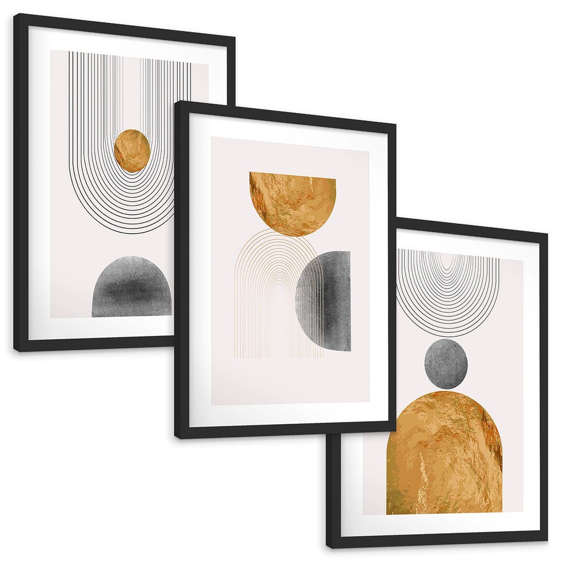 Zestaw obrazy w ramie, plakaty - abstrakcja, geometria, minimalizm - rama czarna