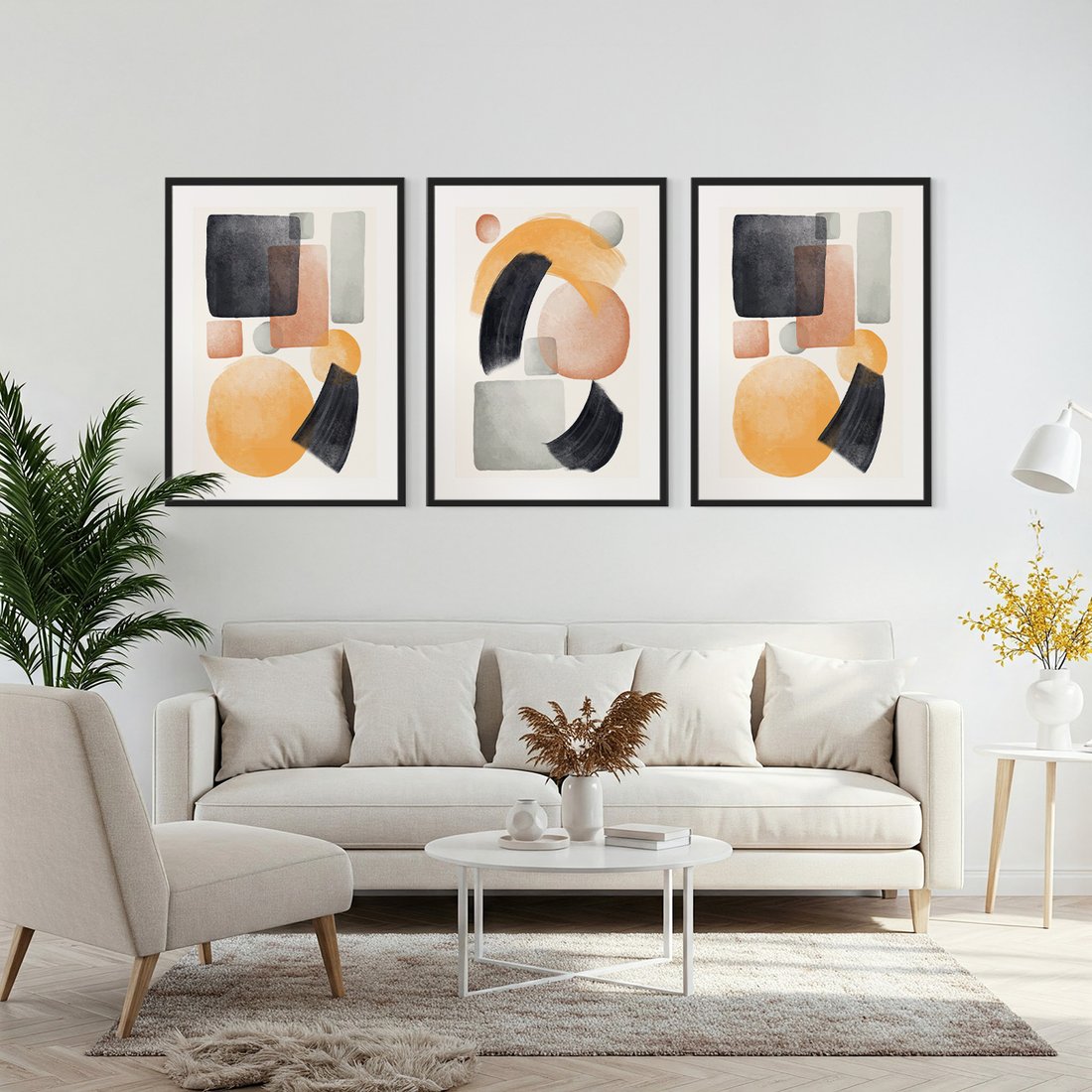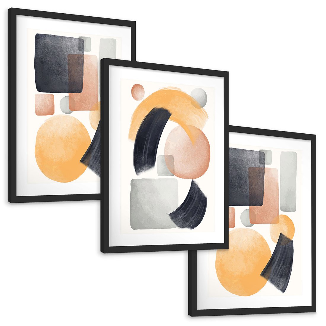 Zestaw obrazy w ramie, plakaty - abstrakcja, geometryczne, kształty - rama czarna
