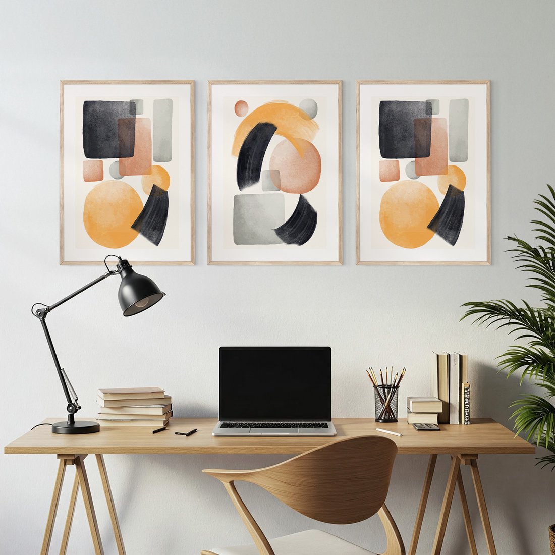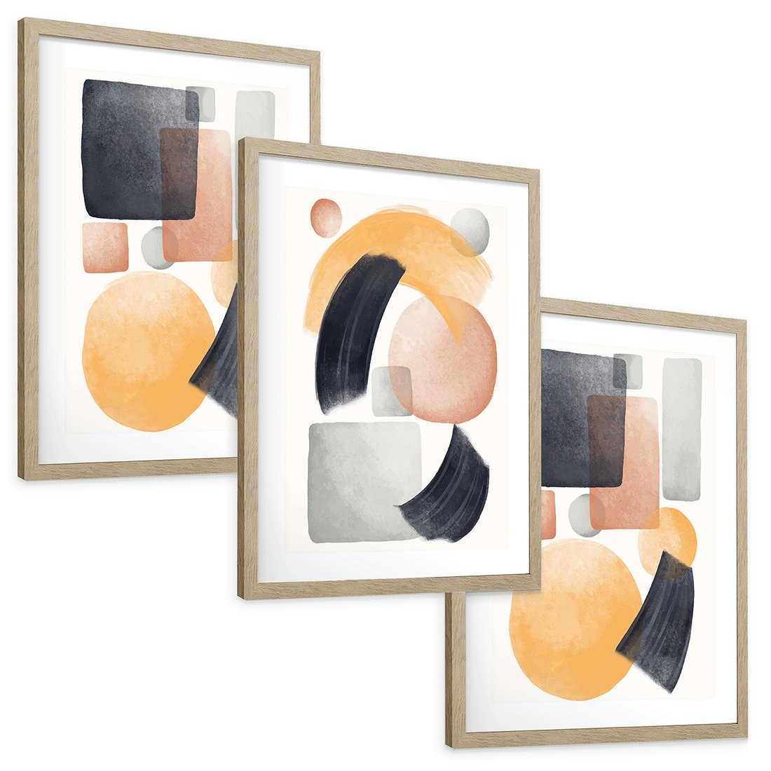 Zestaw obrazy w ramie, plakaty - abstrakcja, geometryczne, kształty - rama drewno
