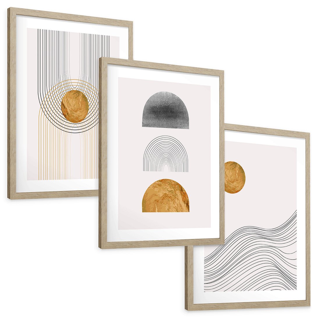 Zestaw obrazy w ramie, plakaty - abstrakcja, geometryczne, linie - rama drewno