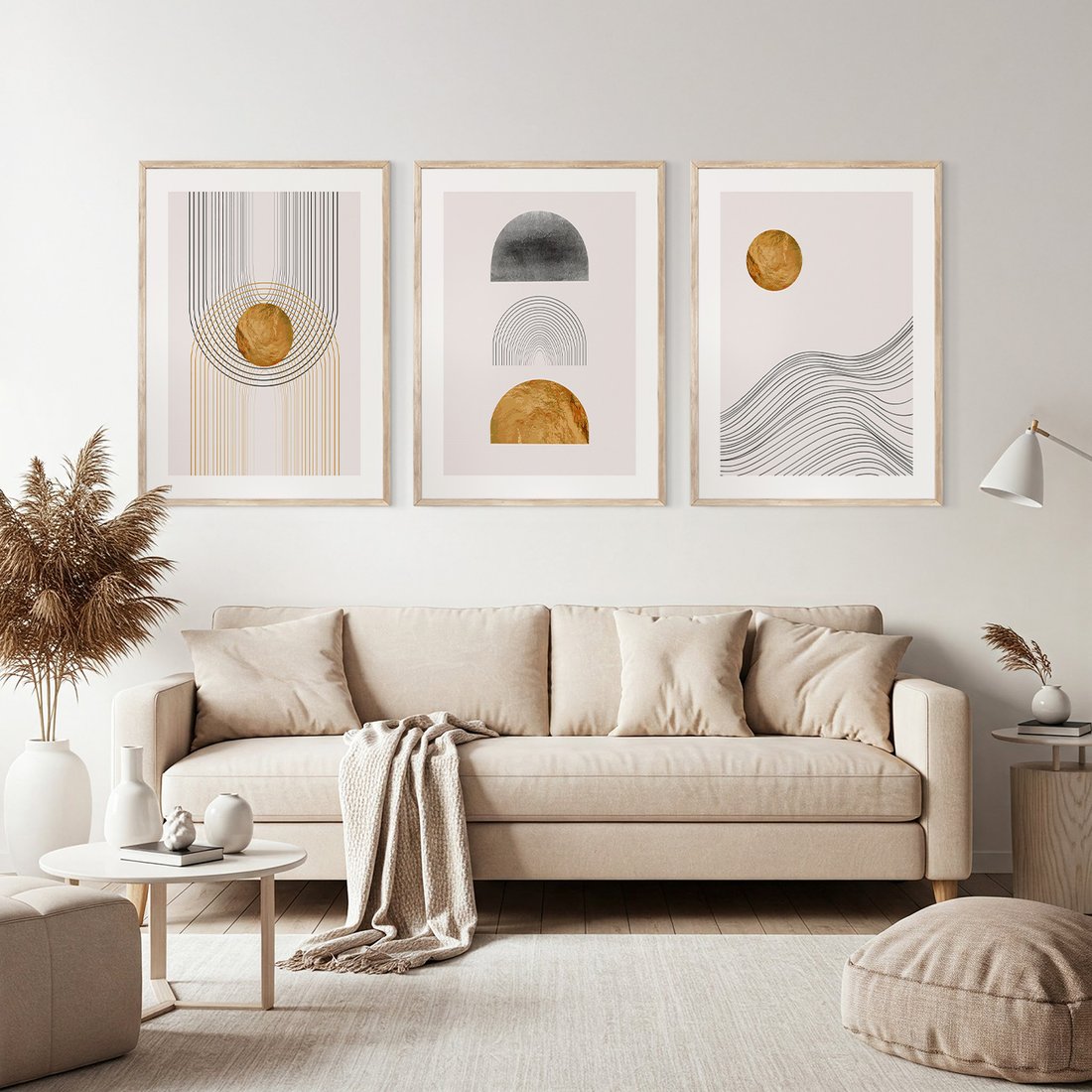 Przenieś piękno sztuki do swojego domu dzięki naszemu starannie skomponowanemu produktowi zestaw obrazów abstrakcja, geometryczne, linie. Każdy plakat, oprawiony w elegancką ramę, łączy w sobie estetykę i trwałość. Uniwersalne wzornictwo sprawia, że te dekoracje ścienne doskonale komponują się z różnymi stylami wnętrz, od nowoczesnych po klasyczne. Łatwość montażu pozwala na szybką i bezproblemową metamorfozę Twojej przestrzeni. To również idealny pomysł na wyszukany prezent, który z pewnością zachwyci.