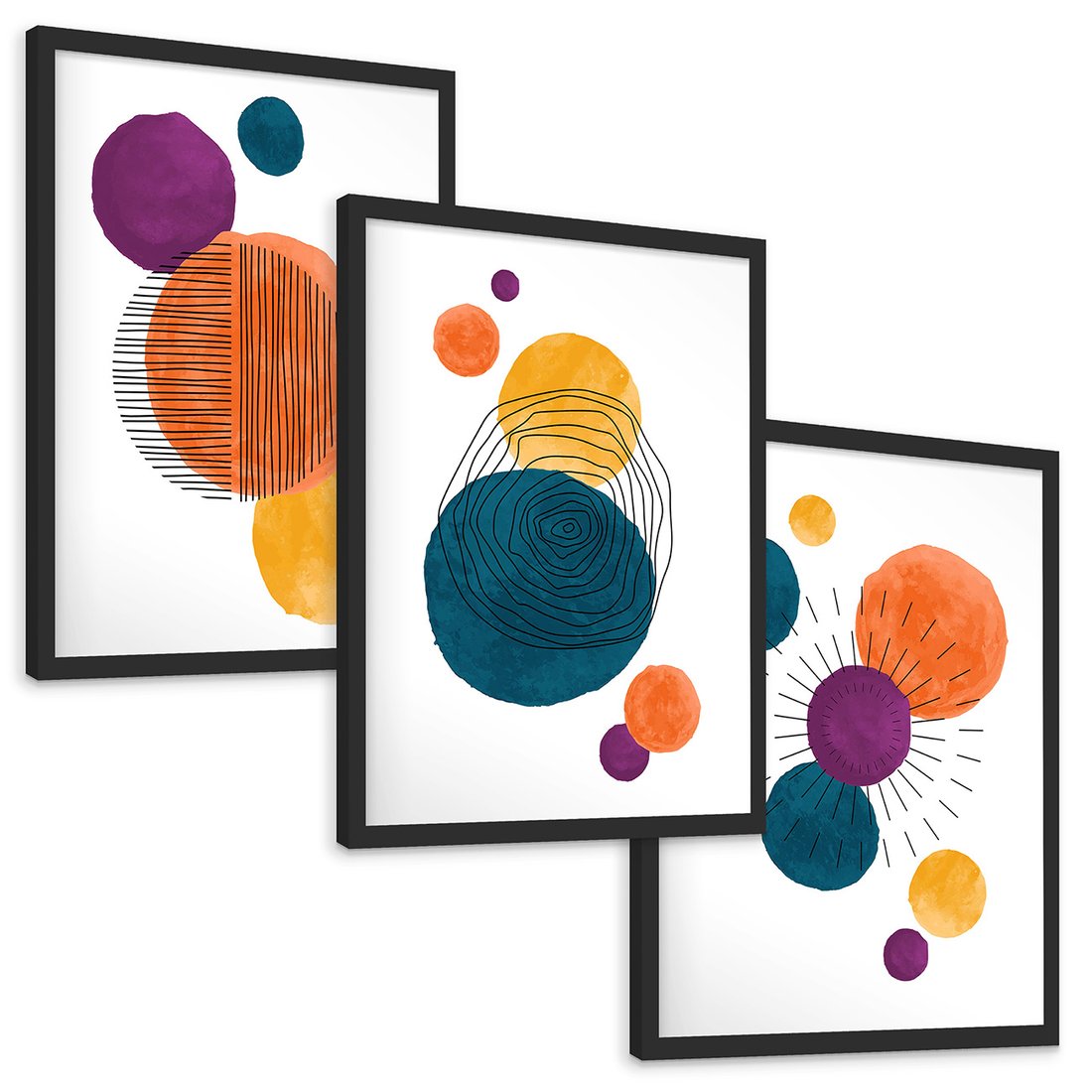 Zestaw obrazy w ramie, plakaty - abstrakcja, grafika, nowoczesne - rama czarna