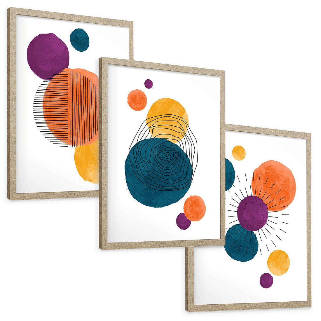 Zestaw obrazy w ramie, plakaty - abstrakcja, grafika, nowoczesne - rama drewno