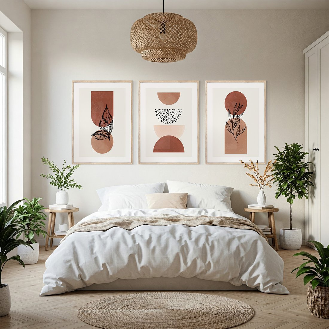 Przenieś piękno sztuki do swojego domu dzięki naszemu starannie skomponowanemu produktowi zestaw obrazów abstrakcja, liście, kształty. Każdy plakat, oprawiony w elegancką ramę, łączy w sobie estetykę i trwałość. Uniwersalne wzornictwo sprawia, że te dekoracje ścienne doskonale komponują się z różnymi stylami wnętrz, od nowoczesnych po klasyczne. Łatwość montażu pozwala na szybką i bezproblemową metamorfozę Twojej przestrzeni. To również idealny pomysł na wyszukany prezent, który z pewnością zachwyci.