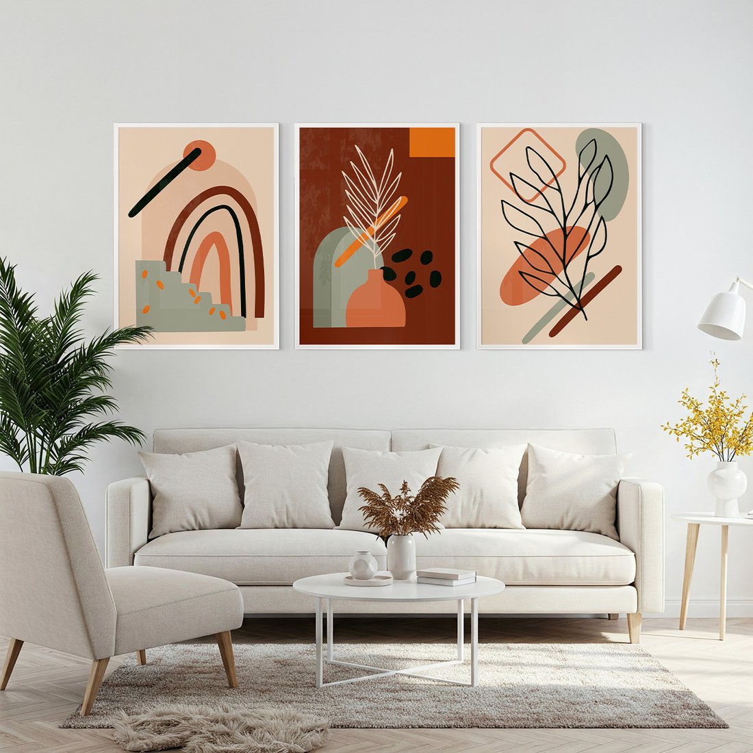 Zestaw obrazy w ramie, plakaty - abstrakcja, liście, rośliny - rama biała
