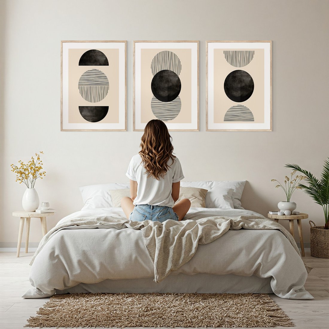 Przenieś piękno sztuki do swojego domu dzięki naszemu starannie skomponowanemu produktowi zestaw obrazów abstrakcja, minimalizm, geometria. Każdy plakat, oprawiony w elegancką ramę, łączy w sobie estetykę i trwałość. Uniwersalne wzornictwo sprawia, że te dekoracje ścienne doskonale komponują się z różnymi stylami wnętrz, od nowoczesnych po klasyczne. Łatwość montażu pozwala na szybką i bezproblemową metamorfozę Twojej przestrzeni. To również idealny pomysł na wyszukany prezent, który z pewnością zachwyci.