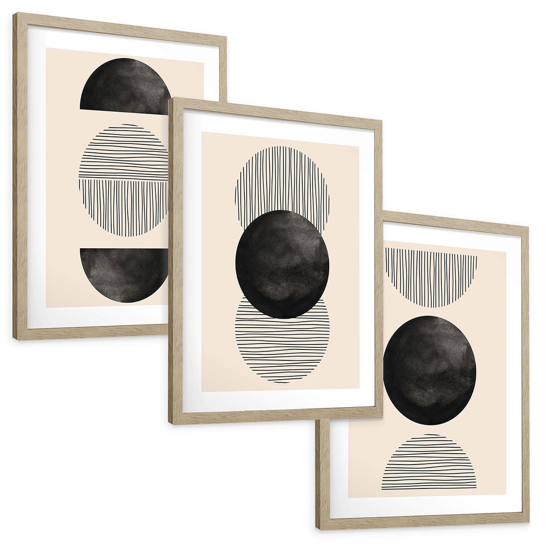 Zestaw obrazy w ramie, plakaty - abstrakcja, minimalizm, geometria - rama drewno
