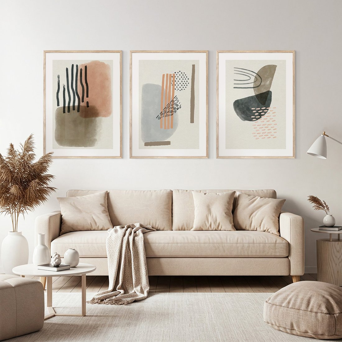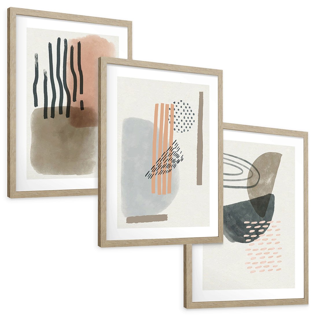 Zestaw obrazy w ramie, plakaty - abstrakcja,pastelowe,wzory - rama drewno