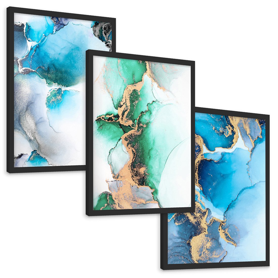 - Zestaw obrazy w ramie, plakaty - abstrakcja, płyny, marmur
