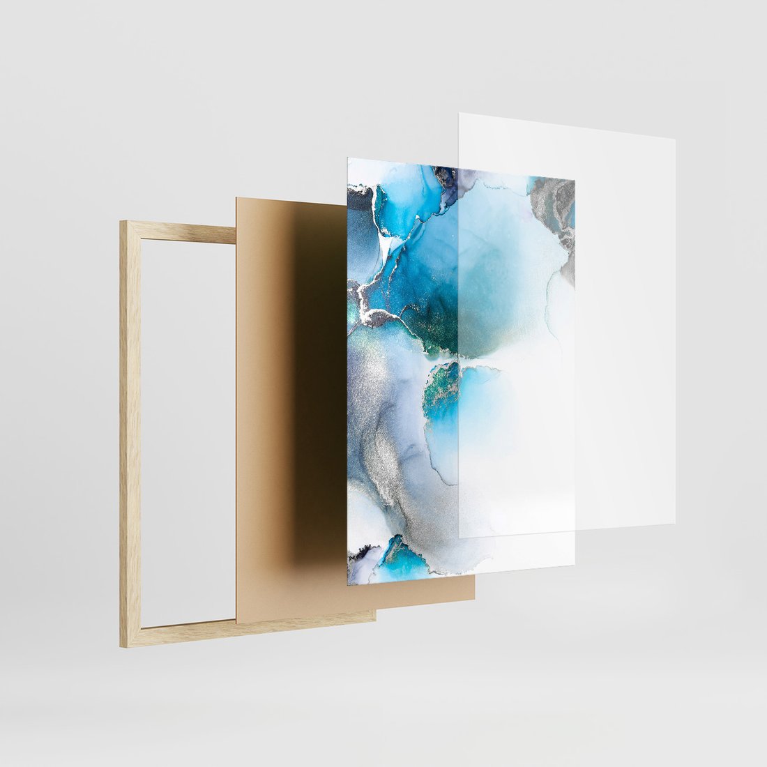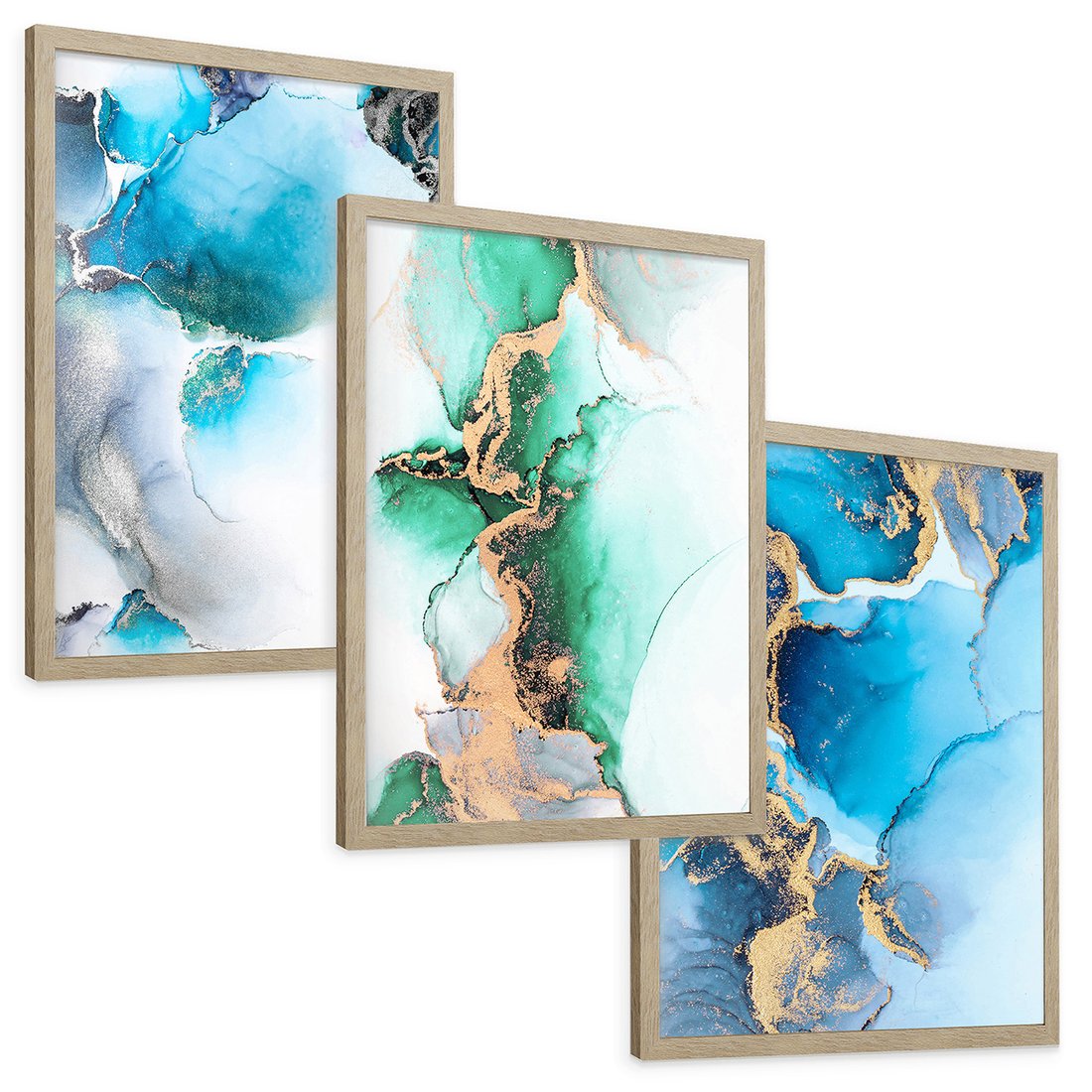 Zestaw obrazy w ramie, plakaty - abstrakcja, płyny, marmur - rama drewno