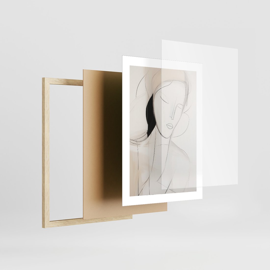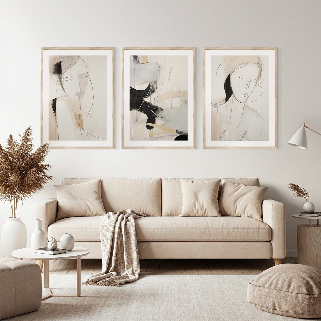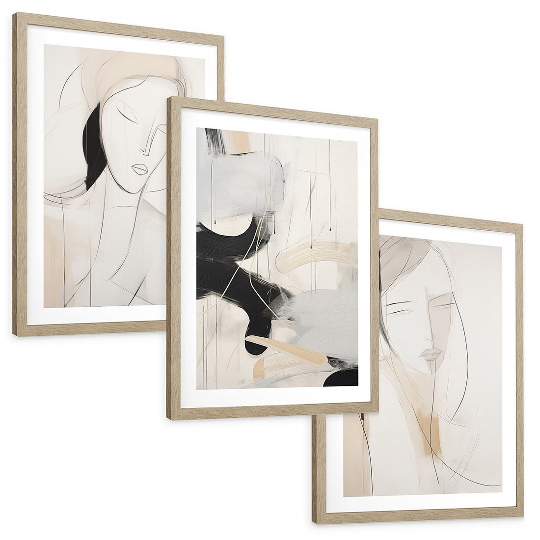 Zestaw obrazy w ramie, plakaty - abstrakcja, portret, minimalizm - rama drewno