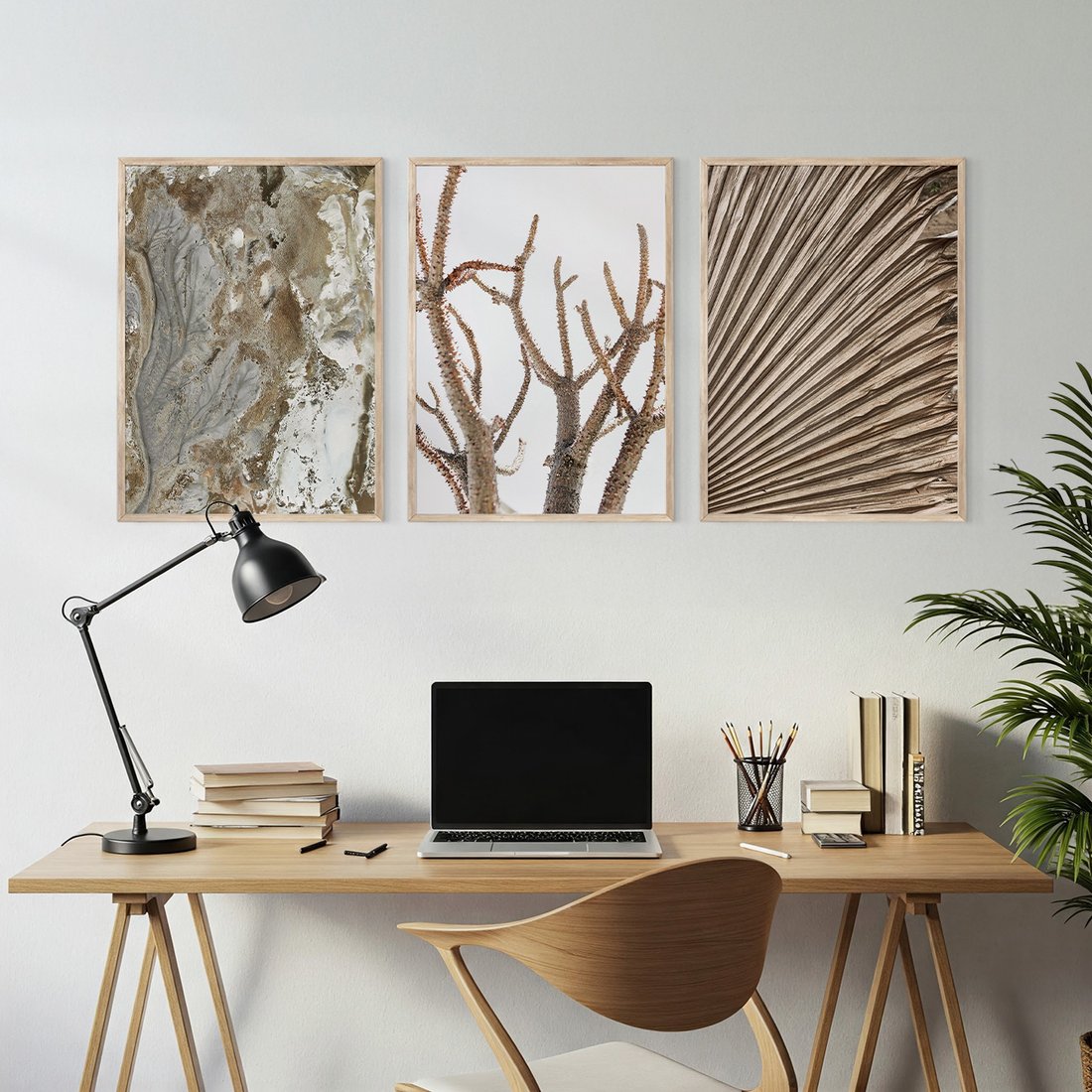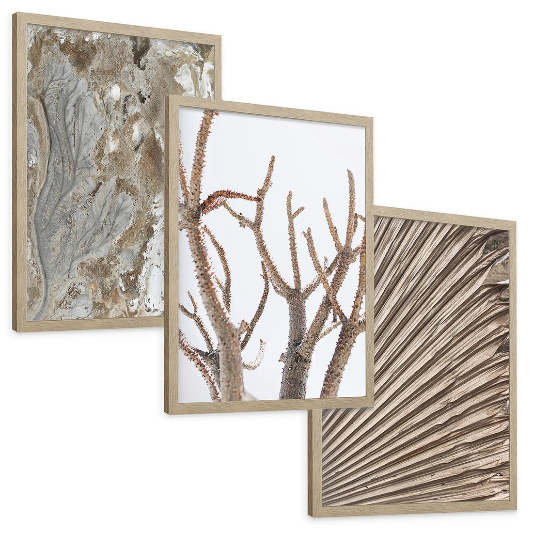 Zestaw obrazy w ramie, plakaty - abstrakcja, roślina, natura - rama drewno