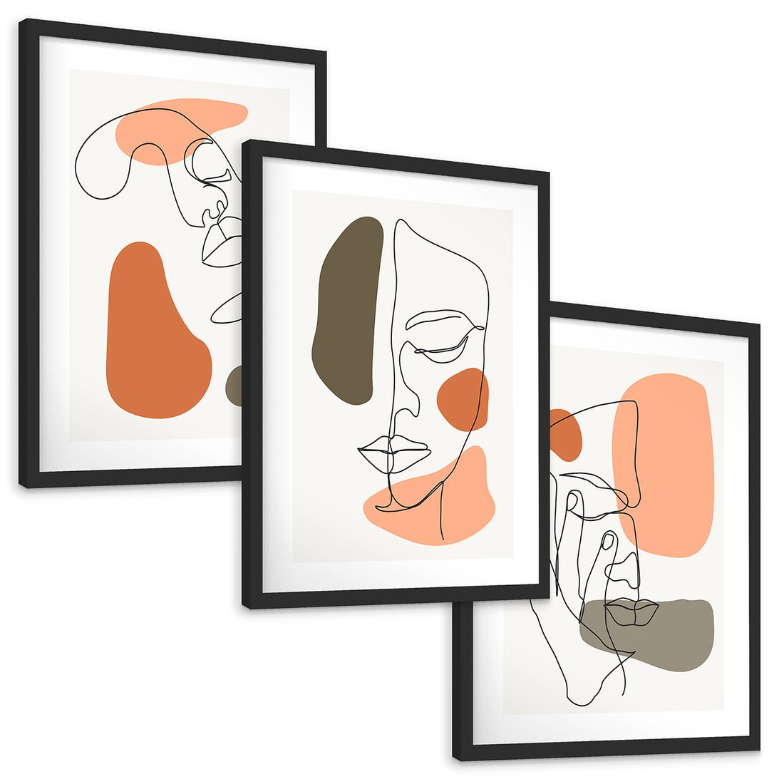 Zestaw obrazy w ramie, plakaty - abstrakcja, twarz, minimalizm - rama czarna