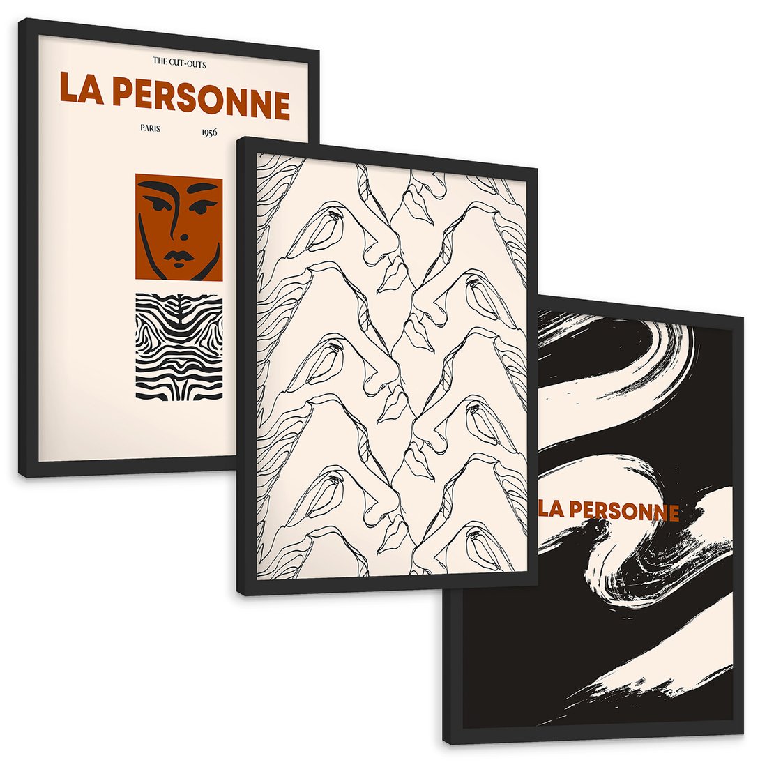 Zestaw obrazy w ramie, plakaty - abstrakcja, twarze, vintage - rama czarna