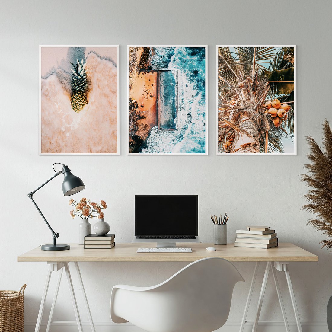 • Zestaw obrazy w ramie, plakaty - ananas, plaża, kokosy