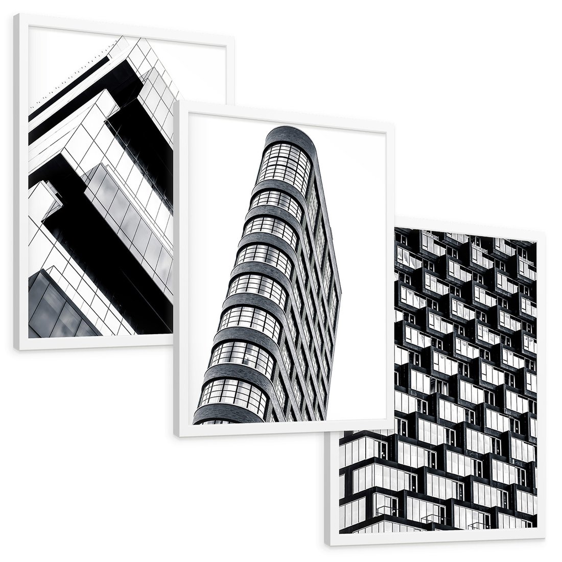 Zestaw obrazy w ramie, plakaty - architektura, budynki, miasto - rama biała