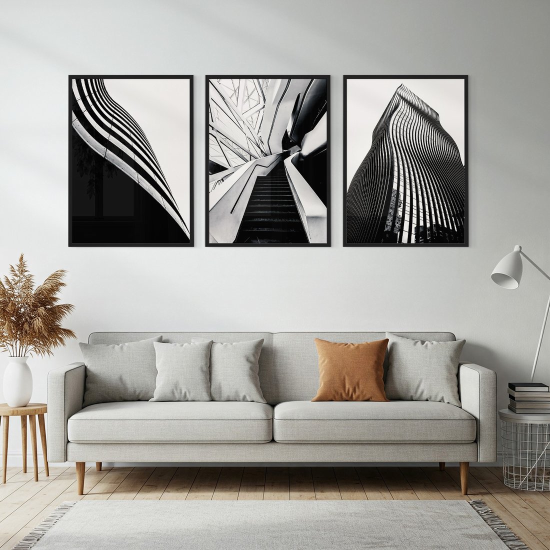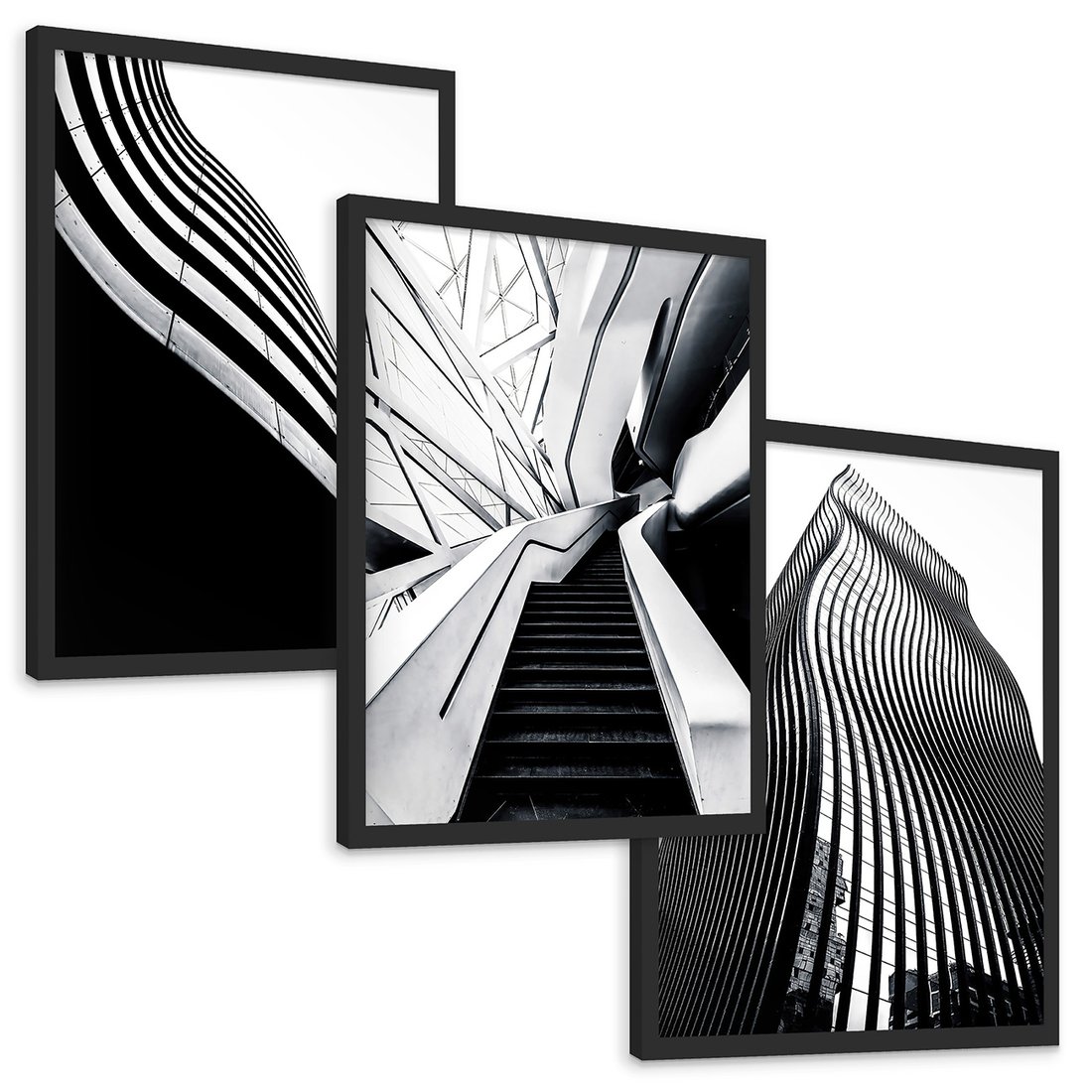 Zestaw obrazy w ramie, plakaty - architektura, budynki, miejski - rama czarna