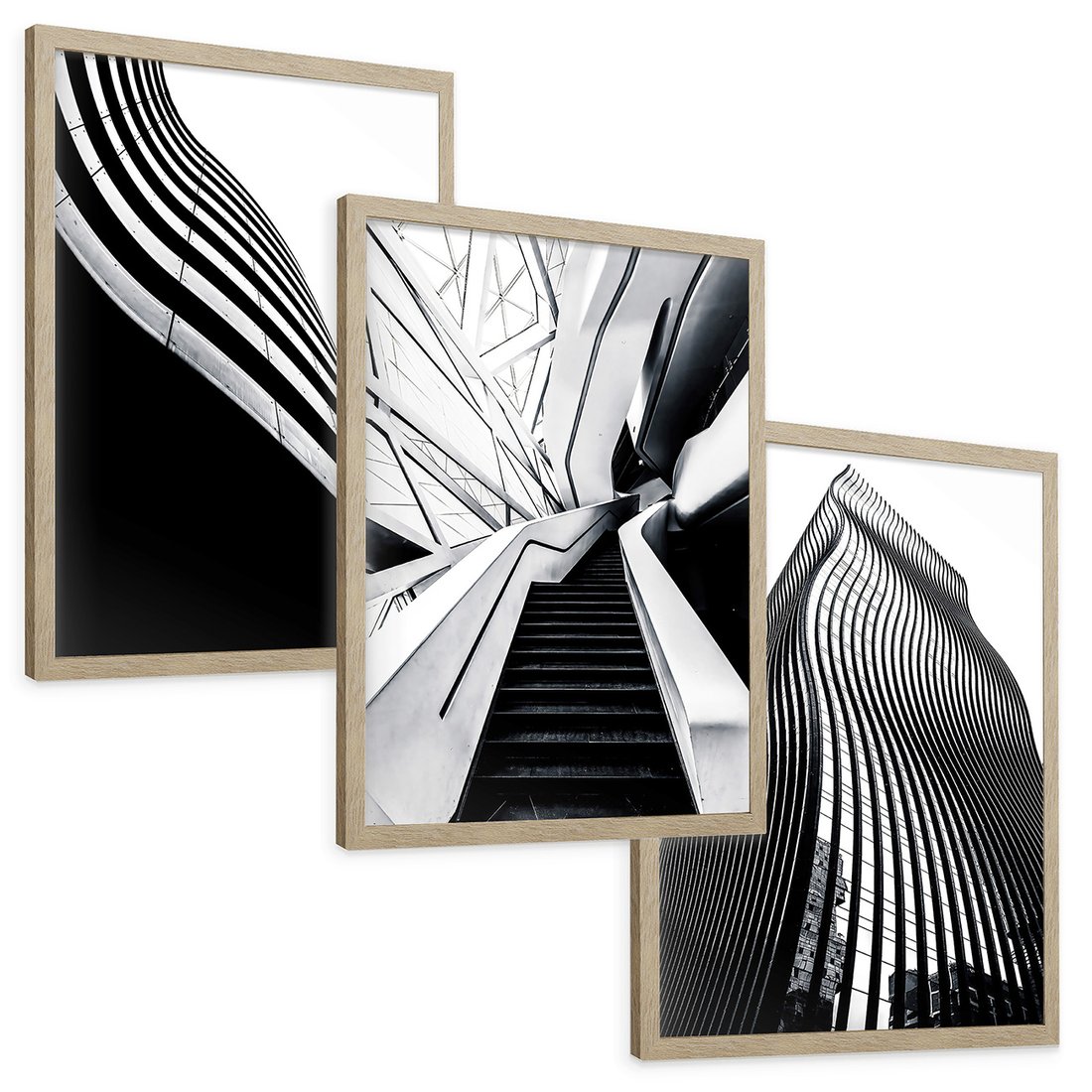Zestaw obrazy w ramie, plakaty - architektura, budynki, miejski - rama drewno
