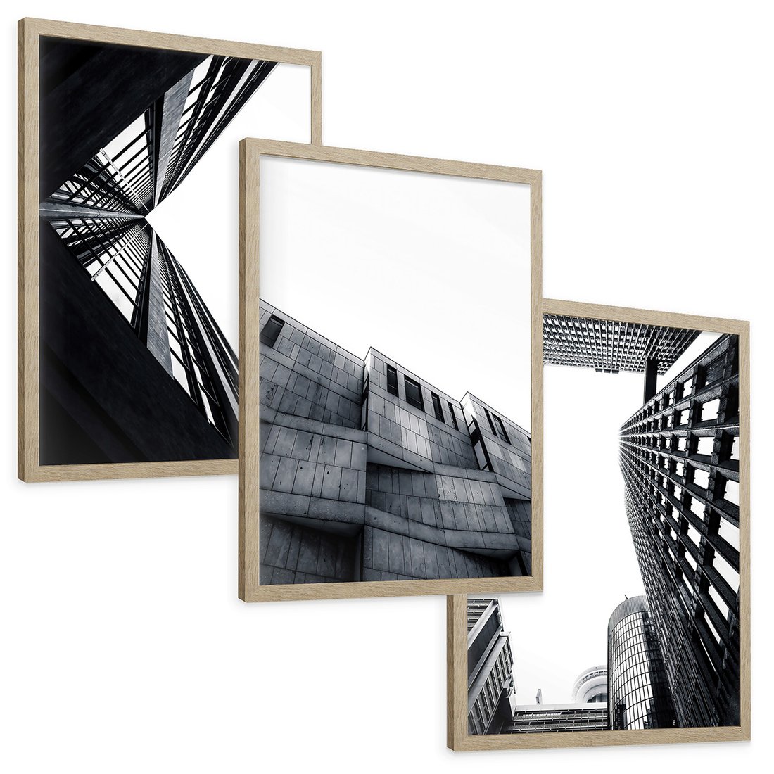 Zestaw obrazy w ramie, plakaty - architektura, budynki, miejski - rama drewno
