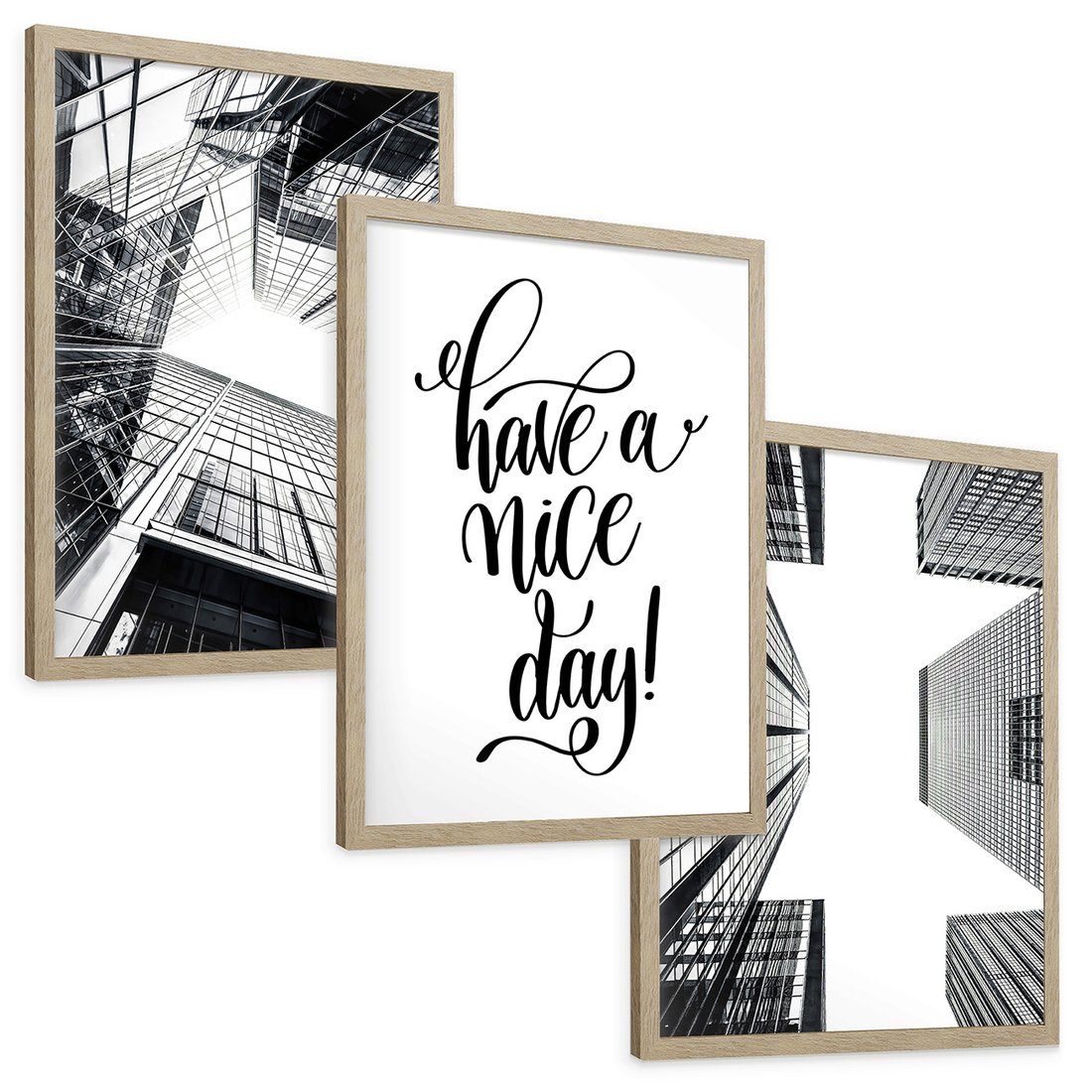 Zestaw obrazy w ramie, plakaty - architektura, budynki, miejski - rama drewno
