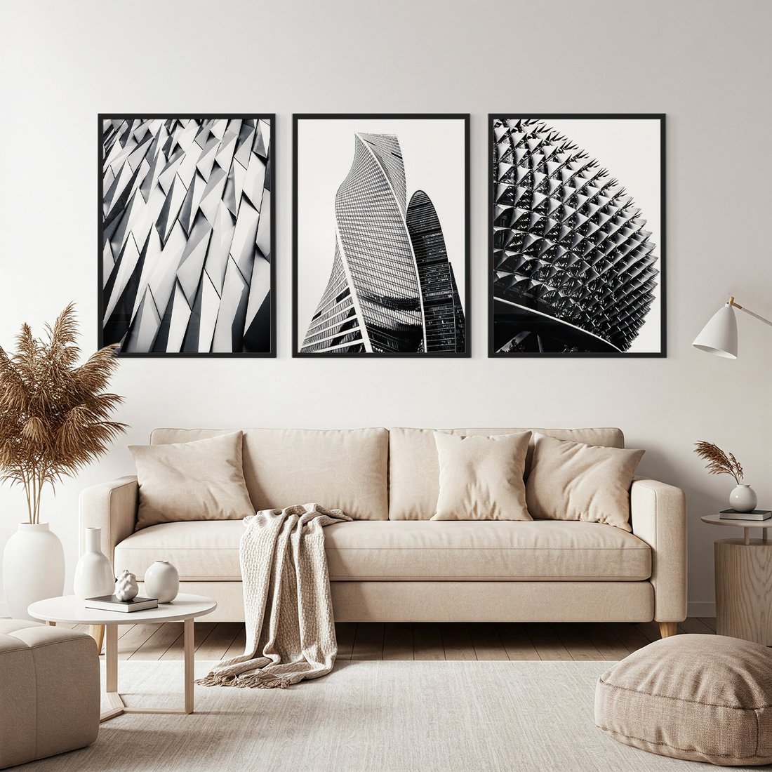 Zestaw obrazy w ramie, plakaty - architektura, budynki, nowoczesność - rama czarna
