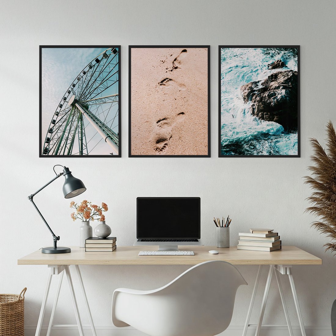 Przenieś piękno sztuki do swojego domu dzięki naszemu starannie skomponowanemu produktowi zestaw obrazów atrakcje, piasek, morze. Każdy plakat, oprawiony w elegancką ramę, łączy w sobie estetykę i trwałość. Uniwersalne wzornictwo sprawia, że te dekoracje ścienne doskonale komponują się z różnymi stylami wnętrz, od nowoczesnych po klasyczne. Łatwość montażu pozwala na szybką i bezproblemową metamorfozę Twojej przestrzeni. To również idealny pomysł na wyszukany prezent, który z pewnością zachwyci.