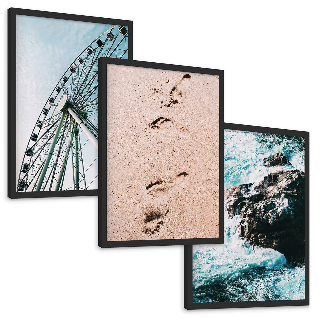 Zestaw obrazy w ramie, plakaty - atrakcje, piasek, morze - rama czarna