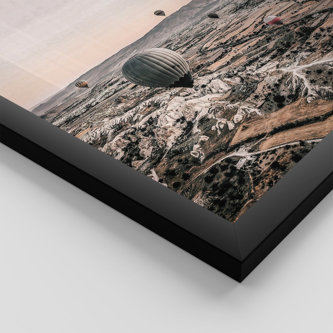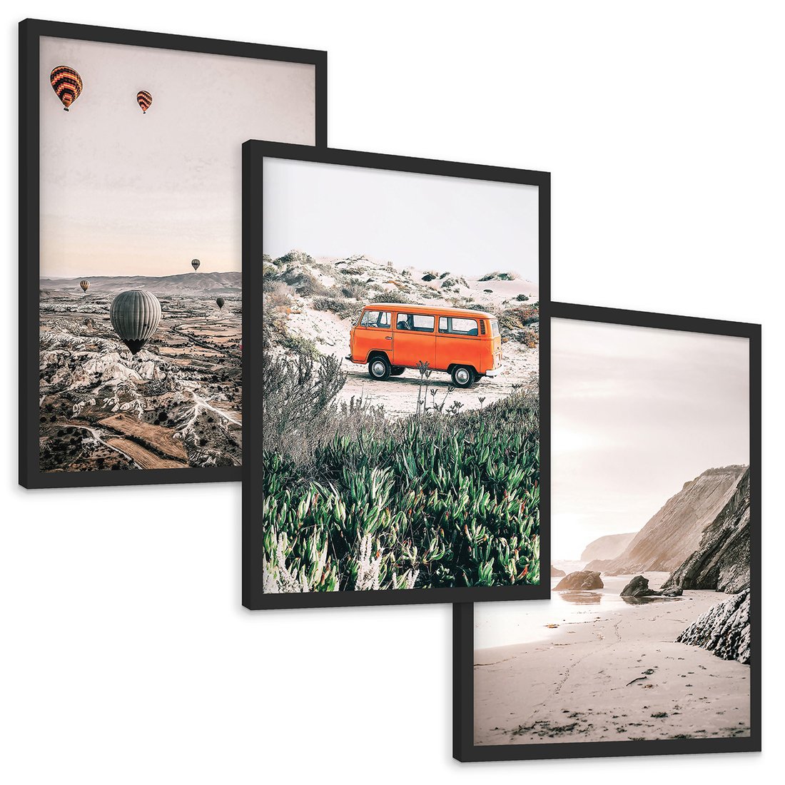 Zestaw obrazy w ramie, plakaty - balony, morze, plaża - rama czarna