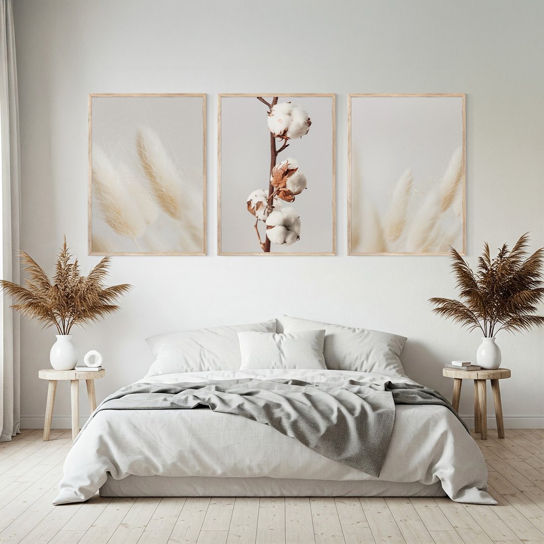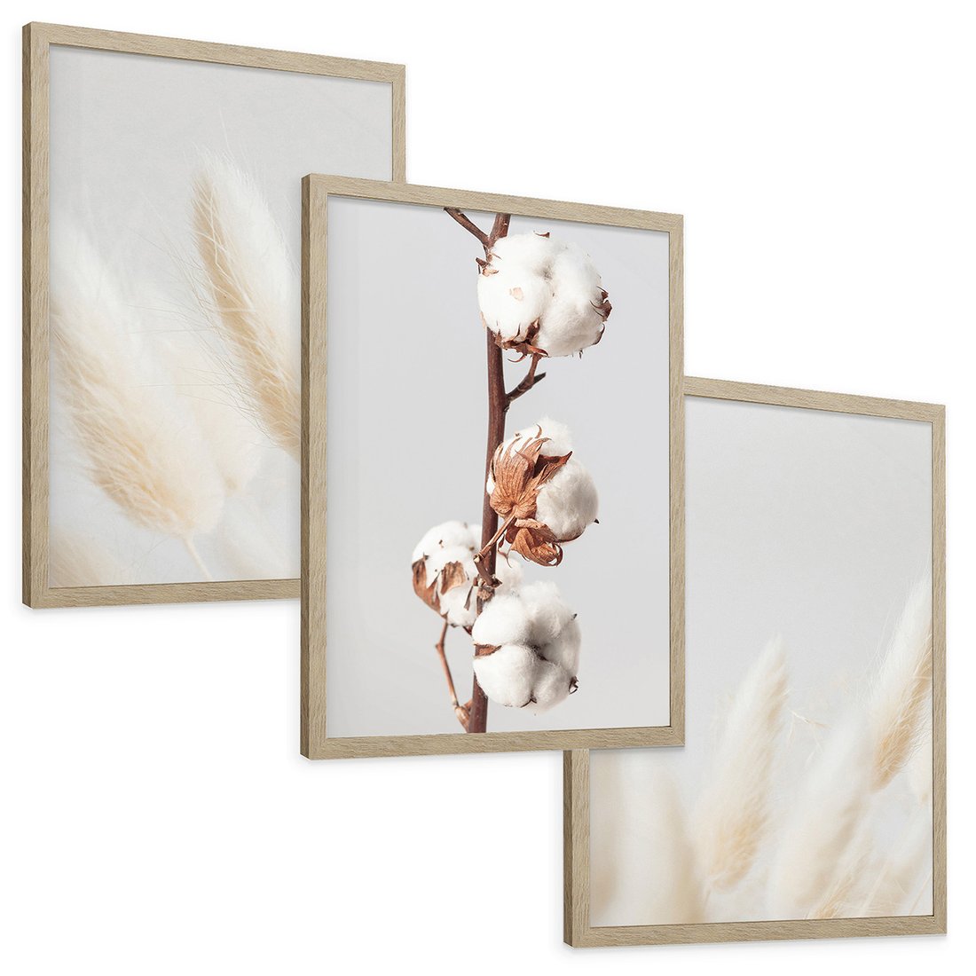 - Zestaw obrazy w ramie, plakaty - bawełna, trawa, puszysty