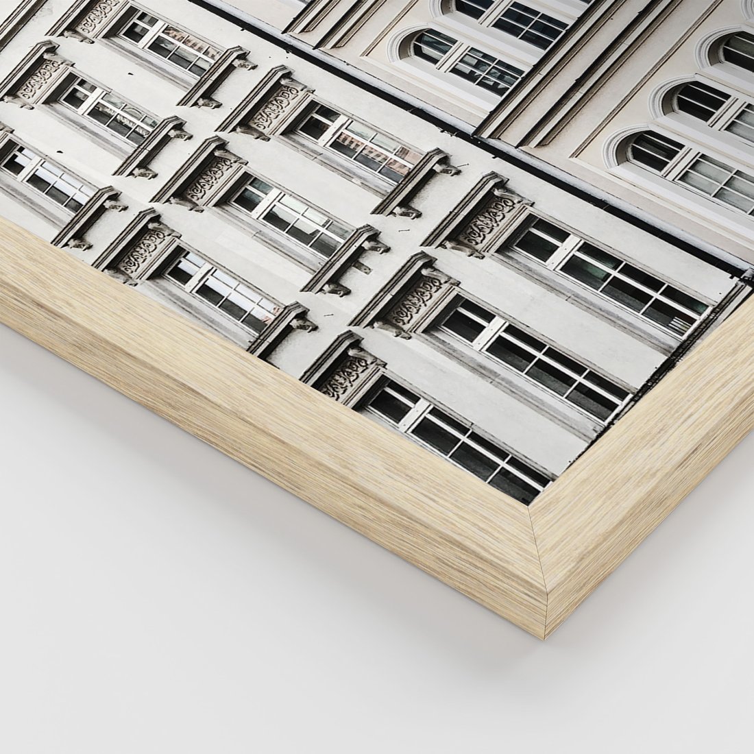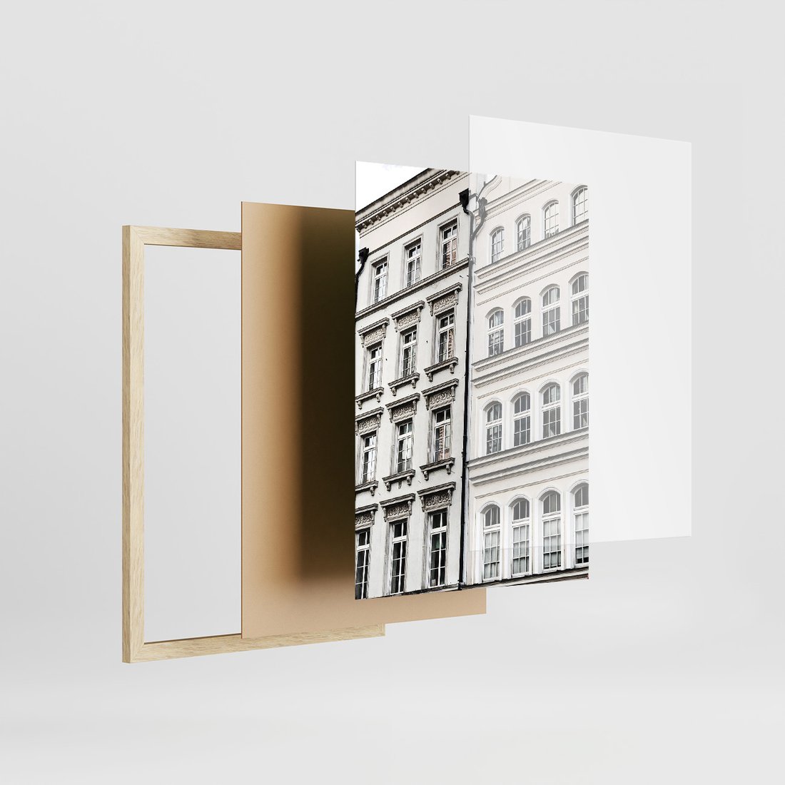 Zestaw obrazy w ramie, plakaty - budynek,typografia,koło - rama drewno