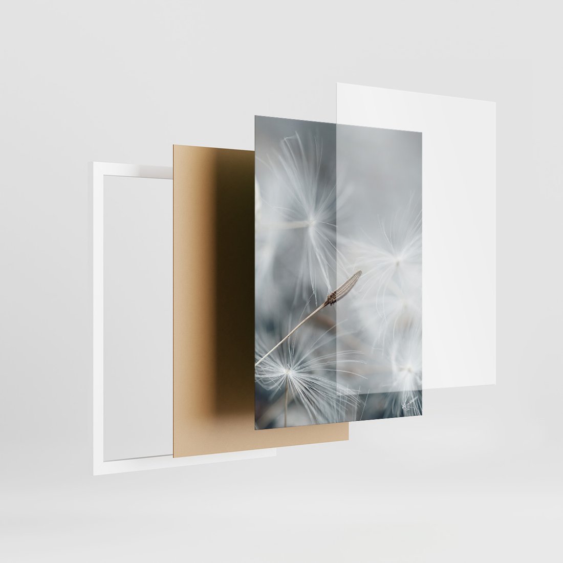 Zestaw obrazy w ramie, plakaty - dmuchawiec, nasiona, natura - rama biała
