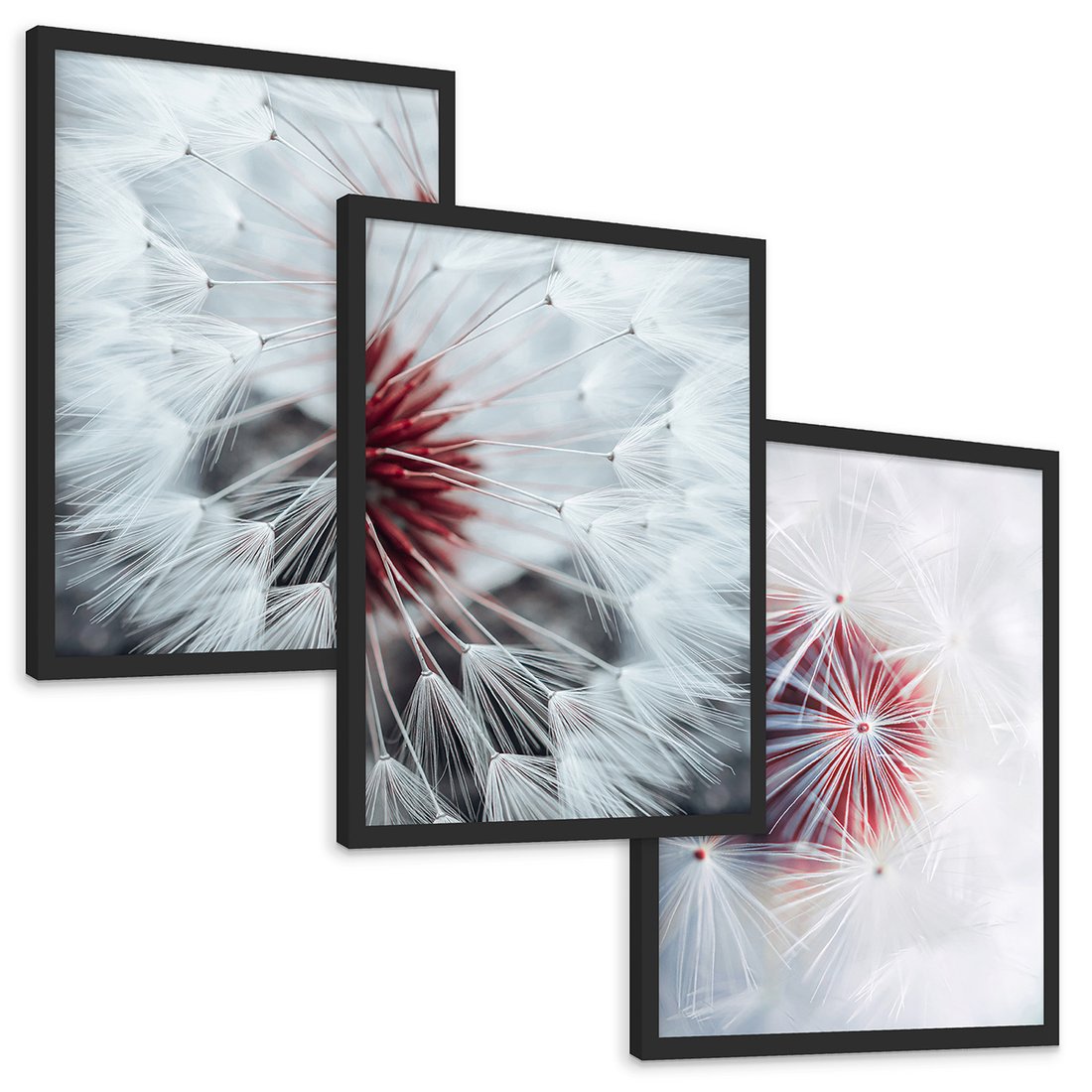 Zestaw obrazy w ramie, plakaty - dmuchawiec, natura, nasiona - rama czarna