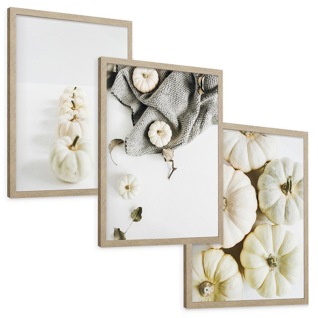 Zestaw obrazy w ramie, plakaty - dynie, jesień, dekoracje - rama drewno