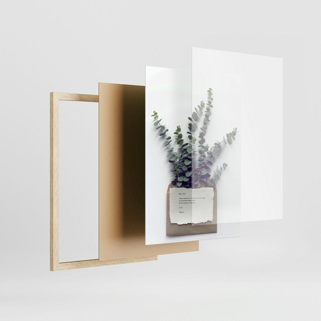 Zestaw obrazy w ramie, plakaty - eukaliptus, liście, gałązki - rama drewno