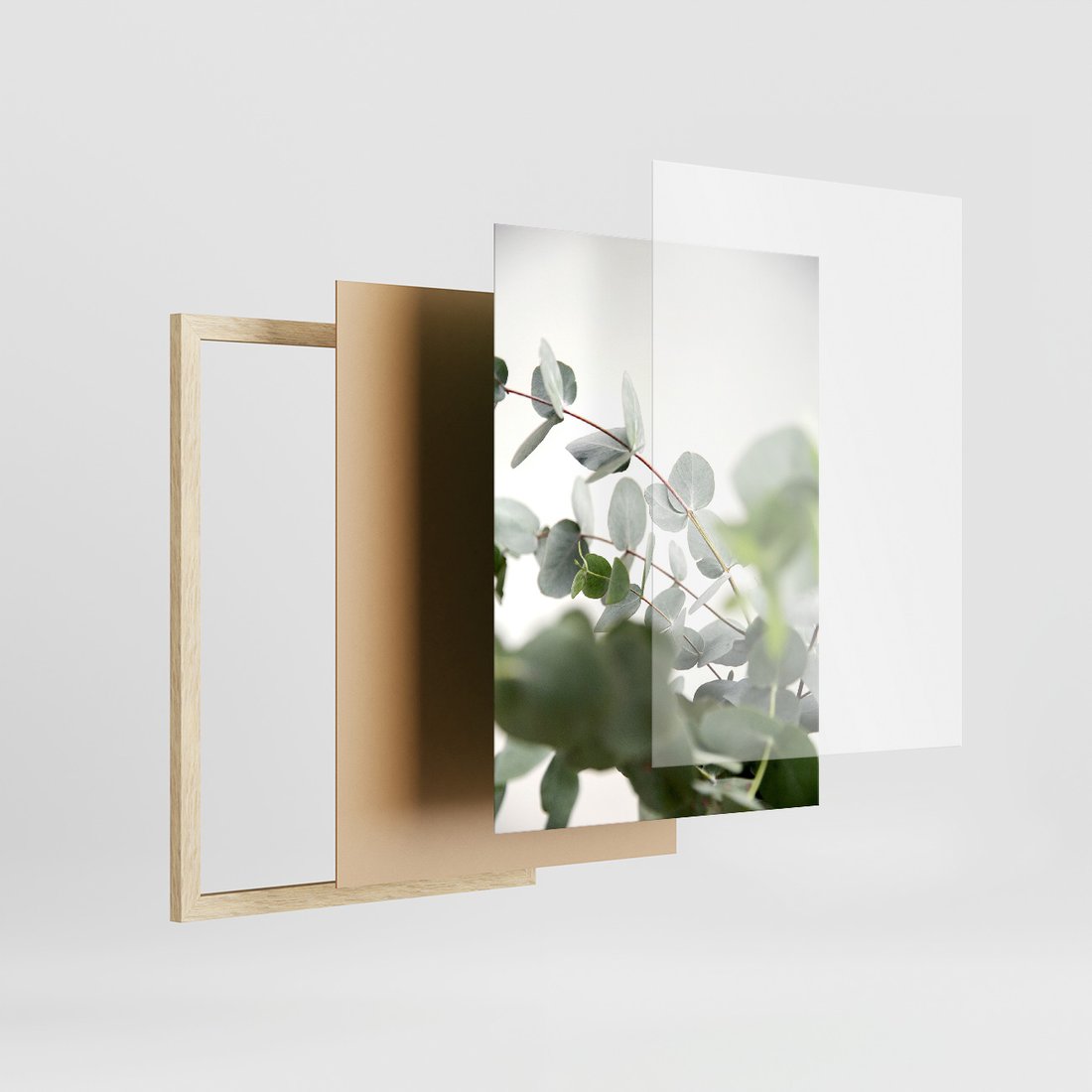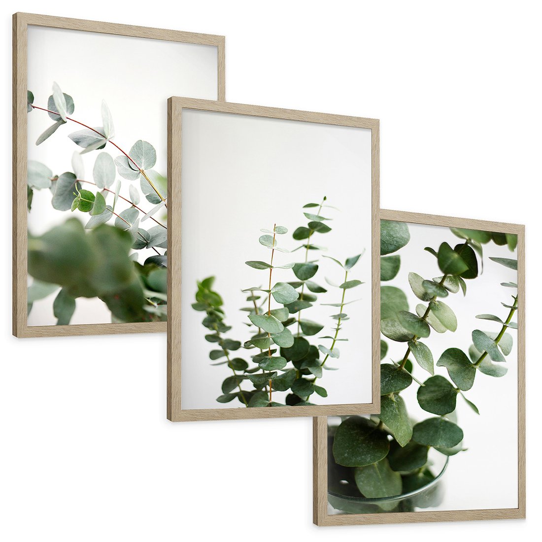 Zestaw obrazy w ramie, plakaty - eukaliptus, liście, roślina - rama drewno