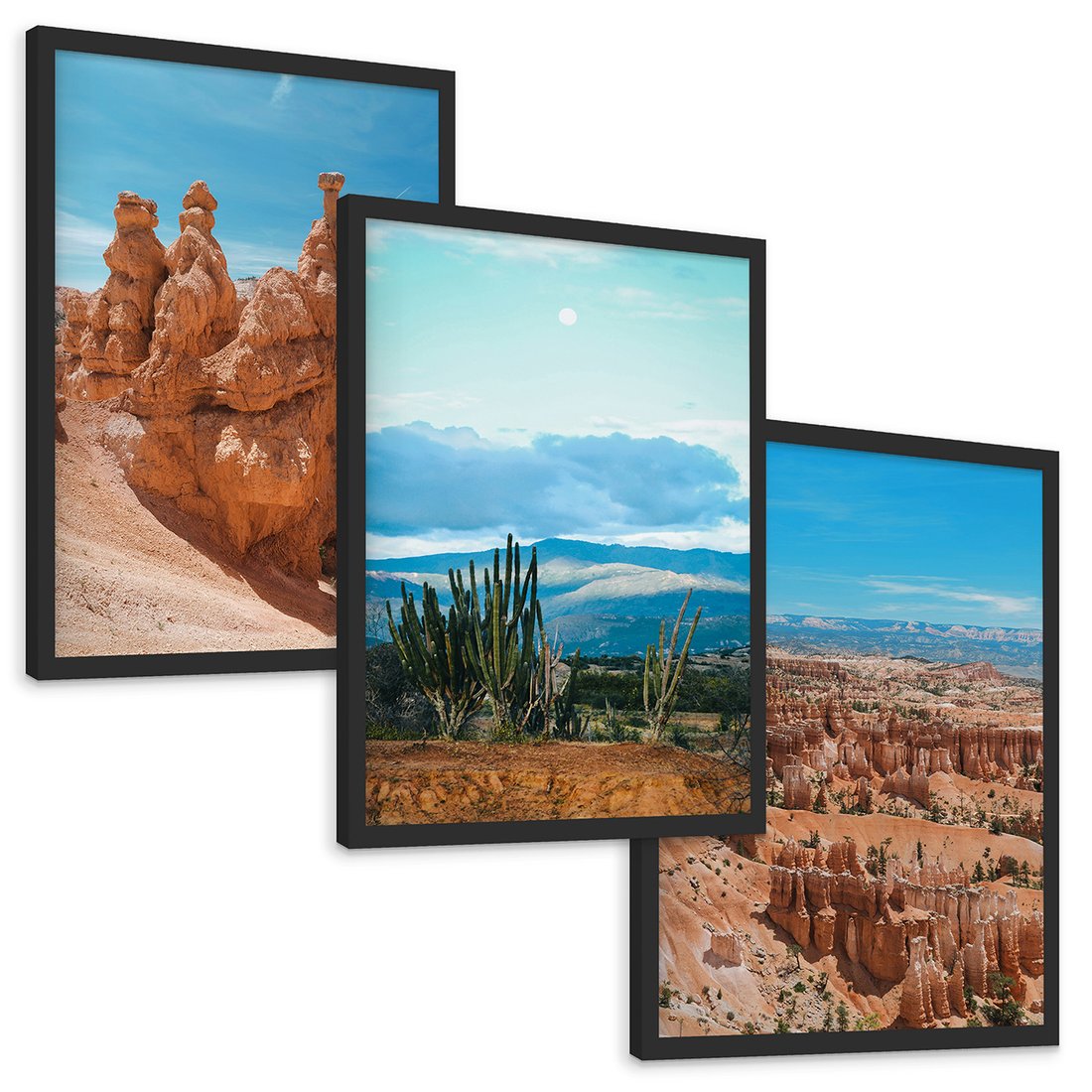 Zestaw obrazy w ramie, plakaty - formacje skalne, kanion, kaktusy - rama czarna